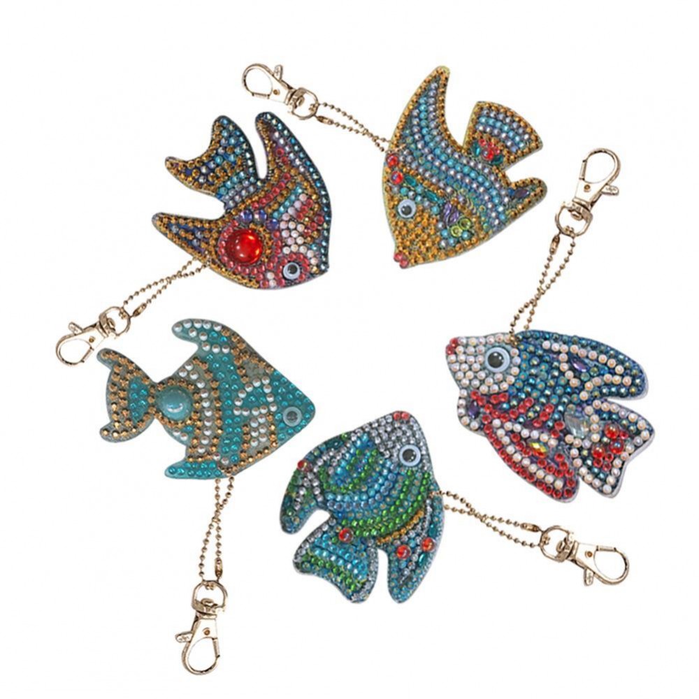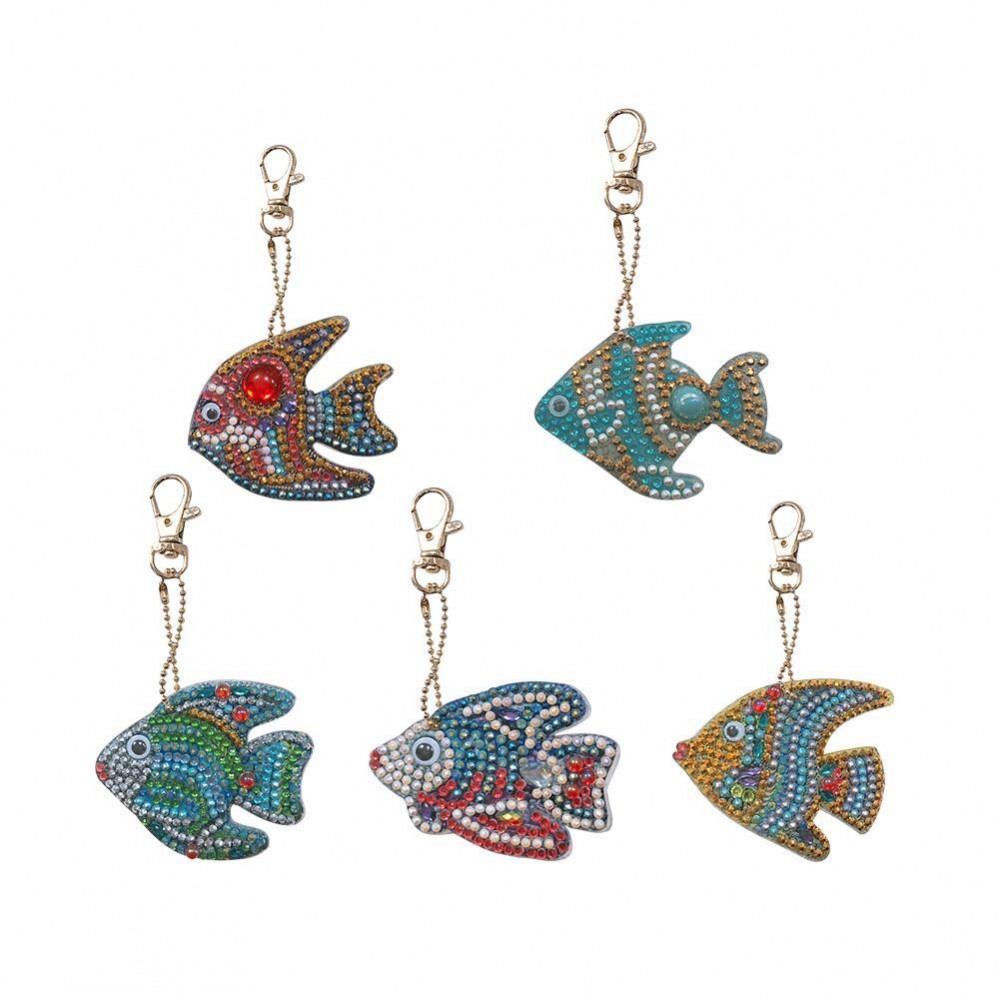 5pcs DIY Cartoon Fish Diamond Keychain