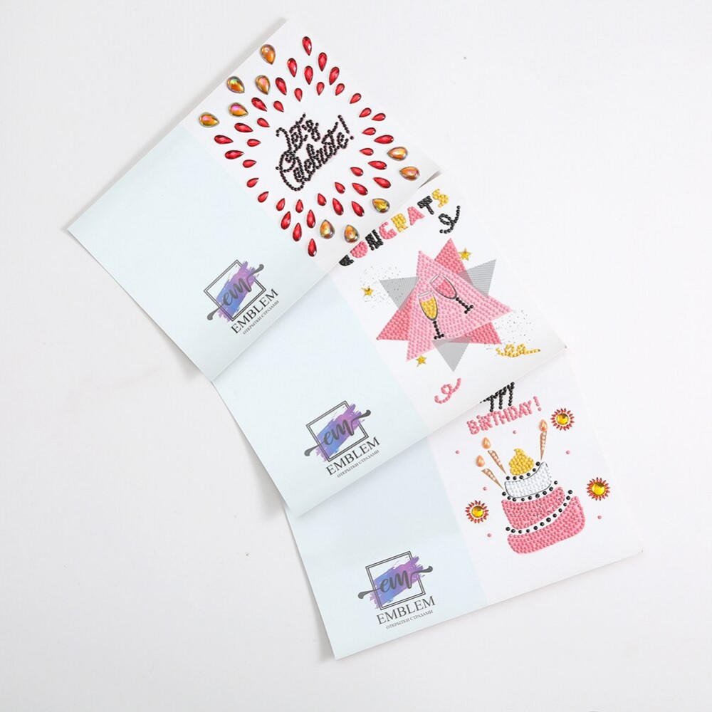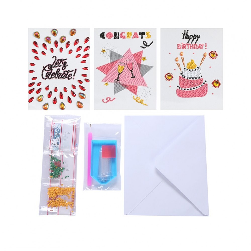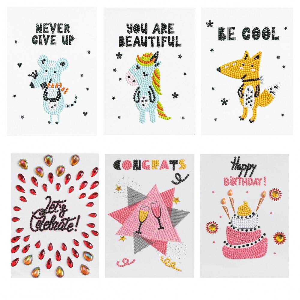 6pcs Cute Cartoon Happy Birthday Card Diamond Painting DIY Handmade Mosaic Rhinestones Craft Greeting Cards Kit Gift