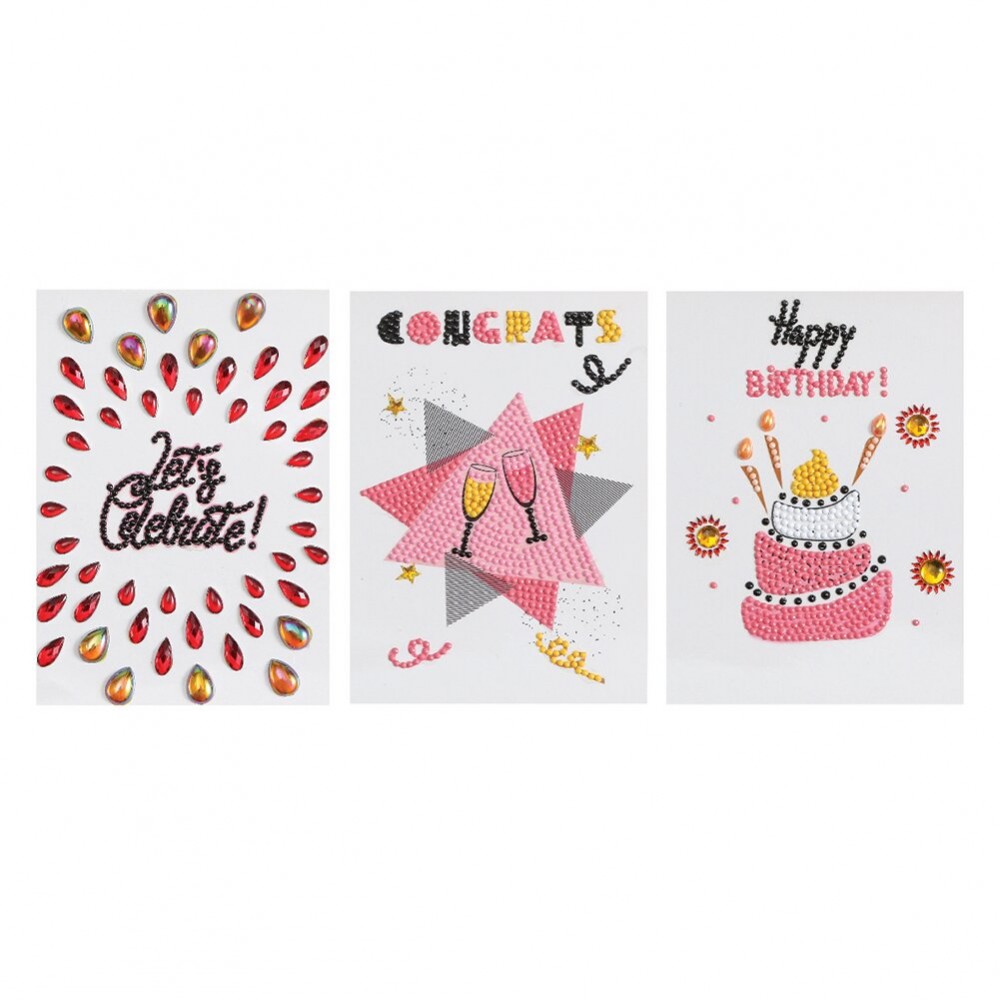 DIY birthday card diamond painting, cartoon handwritten doodle.