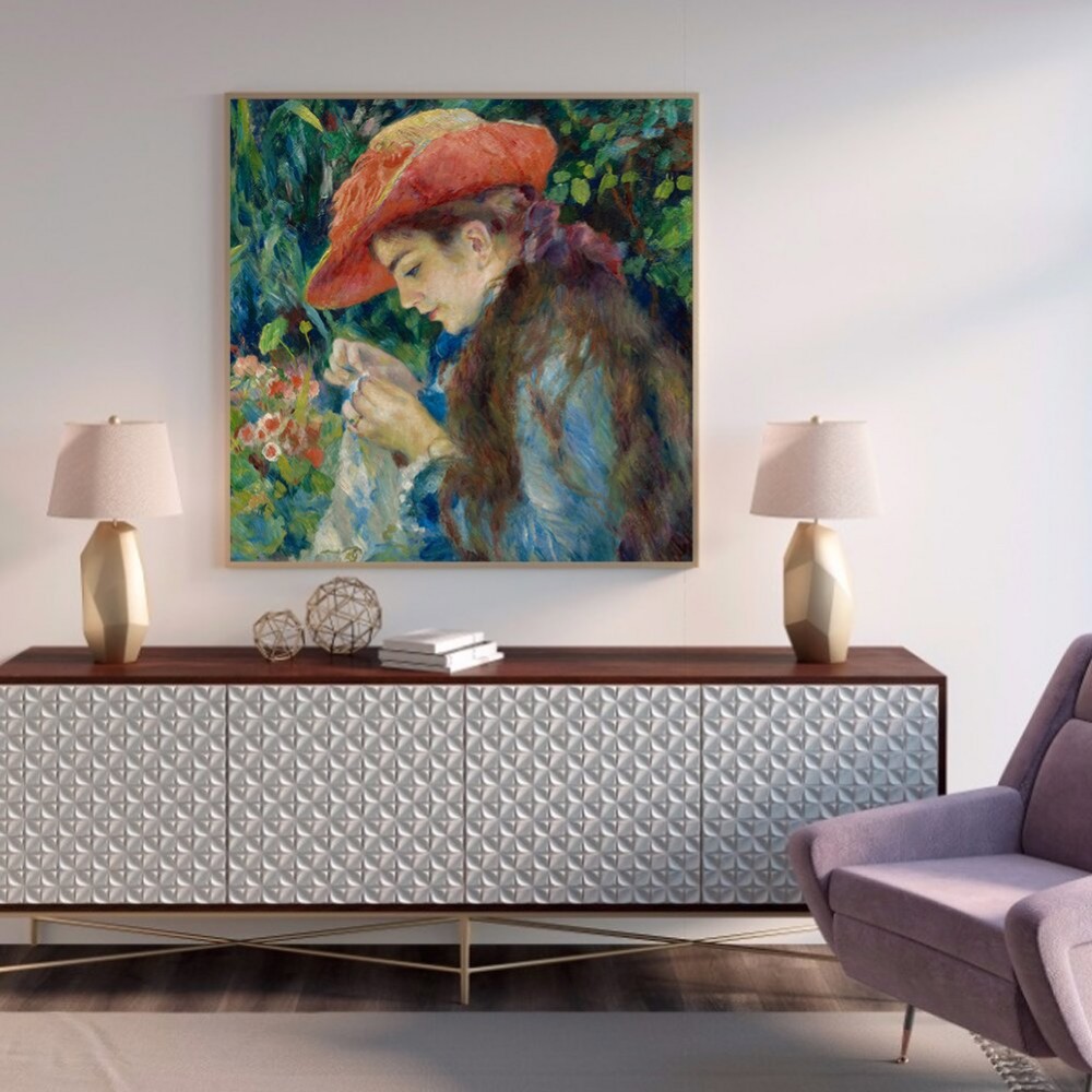 DIY Color Sewing Woman Renoir Oil Painting Kit Full Drill Round Diamond Picture Mosaic Resin Drawing for Wall Decor