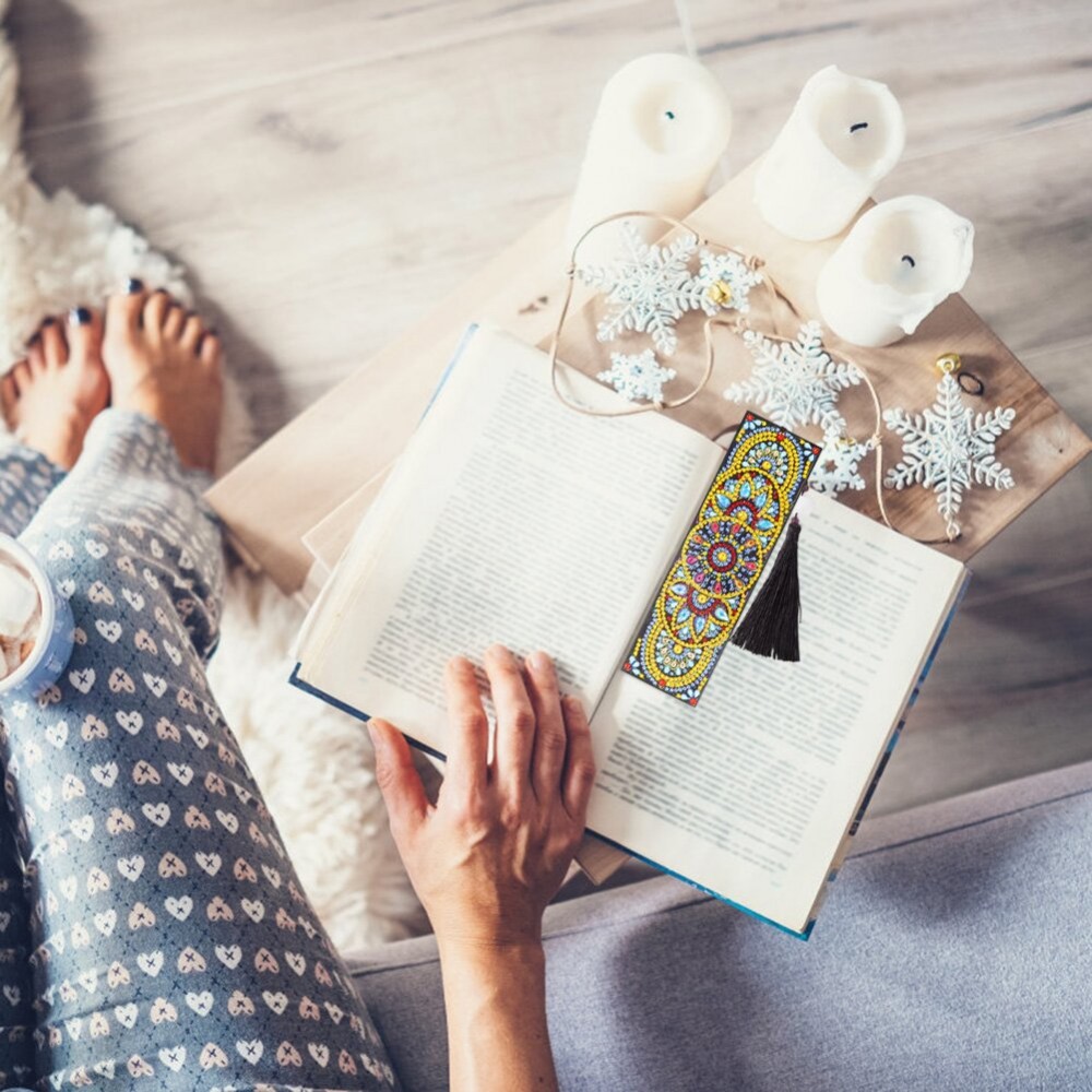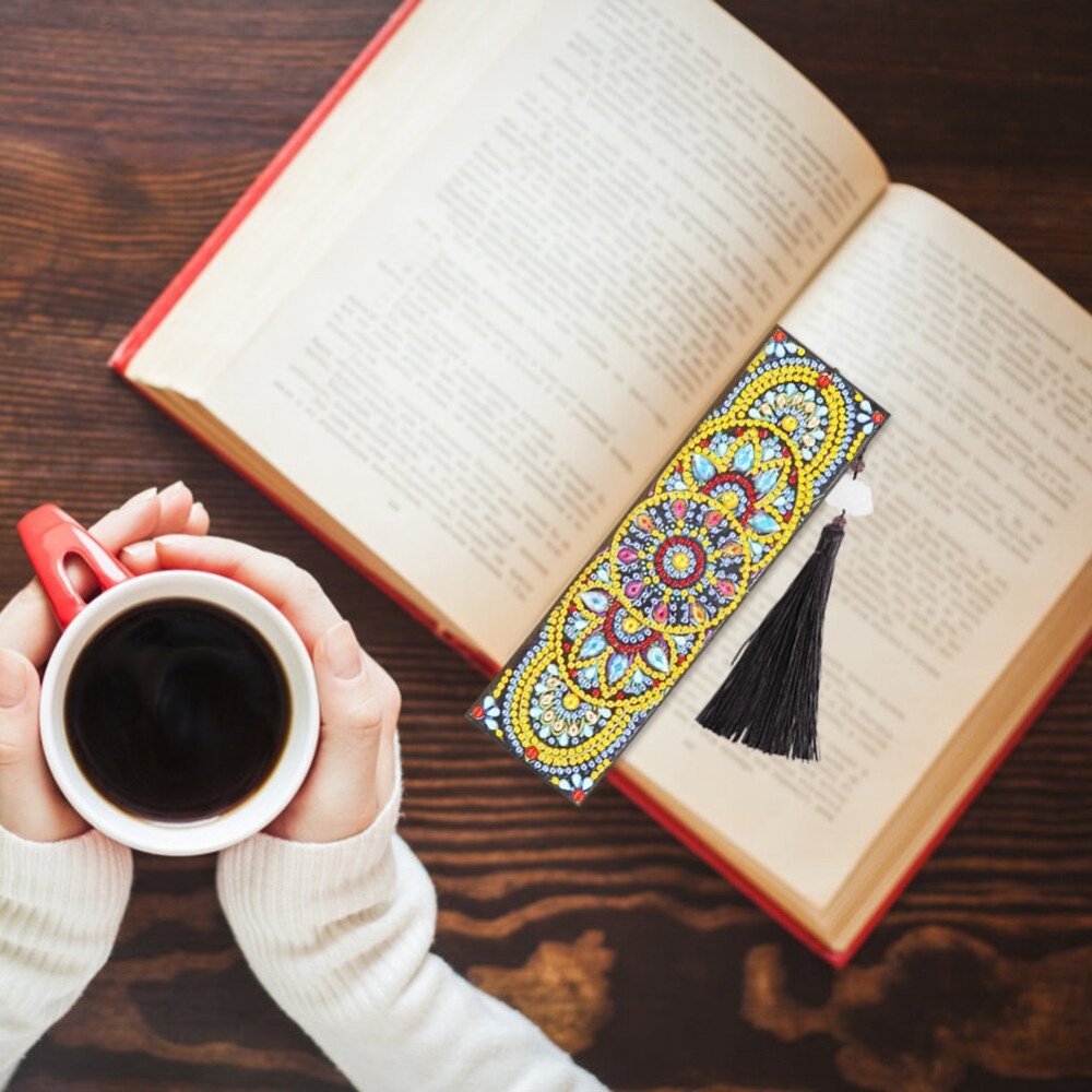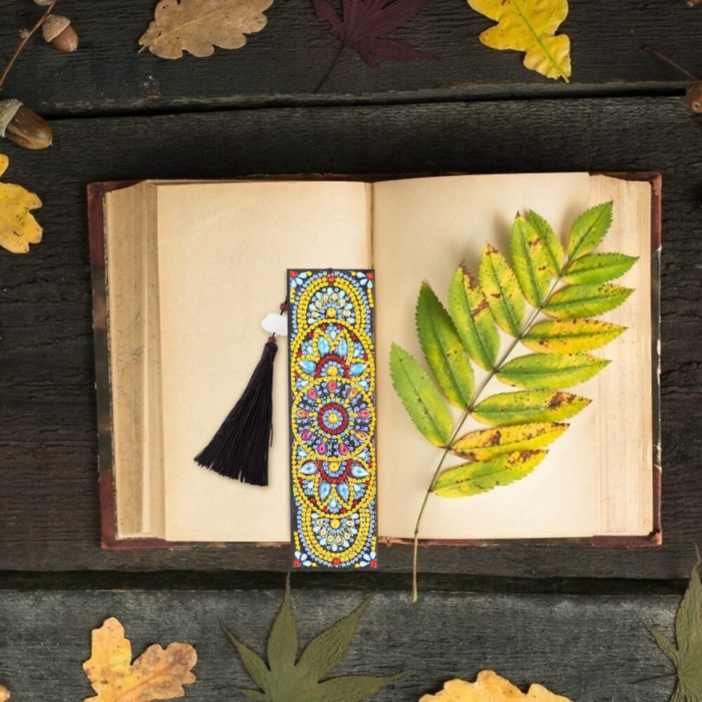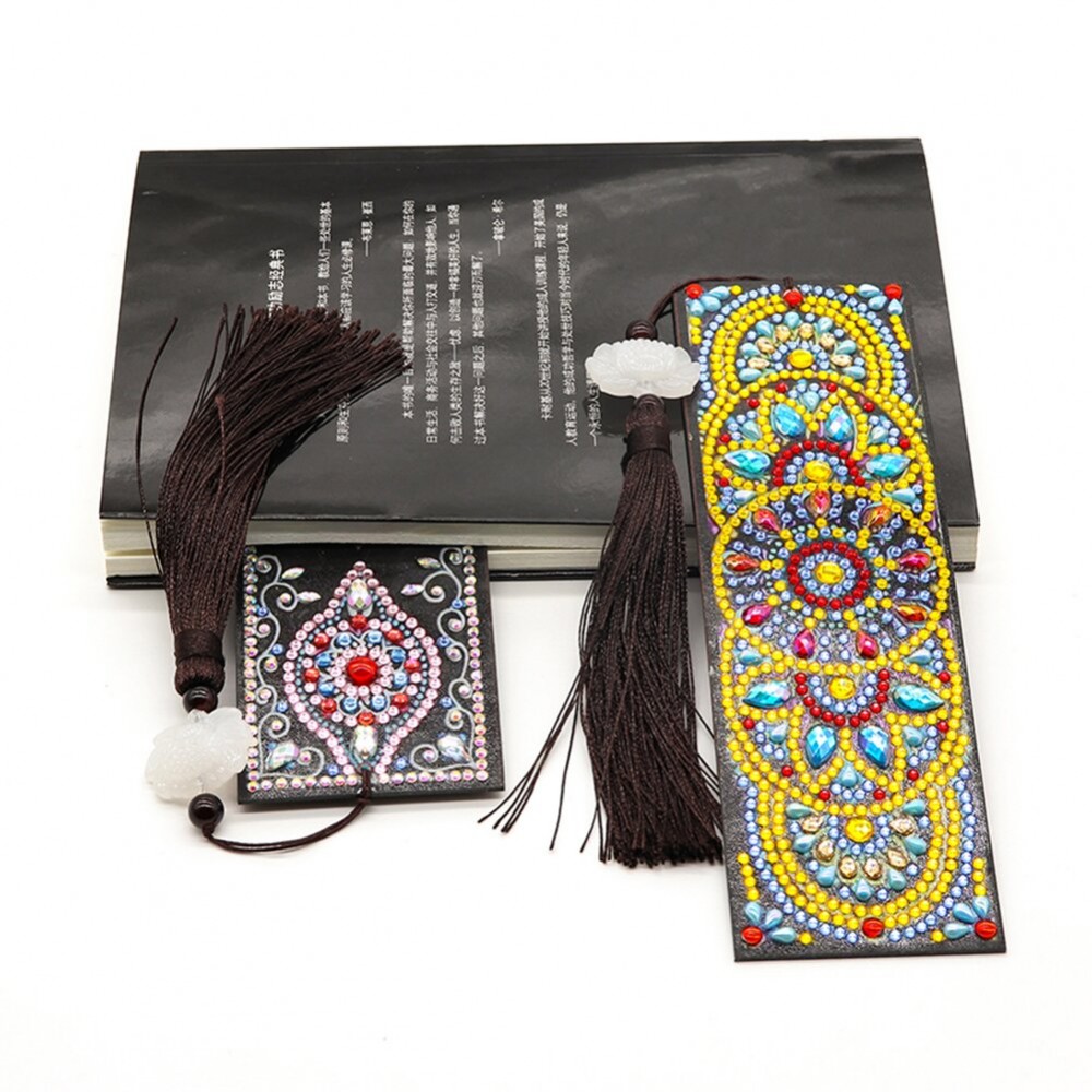 DIY Special Shaped Diamond Painting Blooming Flower Leather Bookmark Tassel Cross Stitch Embroidery Mosaic Kit Book Tab Craft