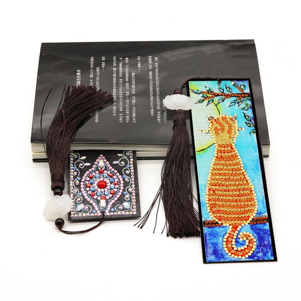 Diamond Painting Bookmark 5D DIY Special Shaped Art Mosaic Leather Tassel Book Marks Embroidery Book Logo Craft for Office Supplies Gifts