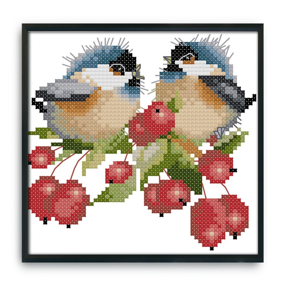 D738 Chirping Bird on Berry: 15x16cm/5.91x6.3in