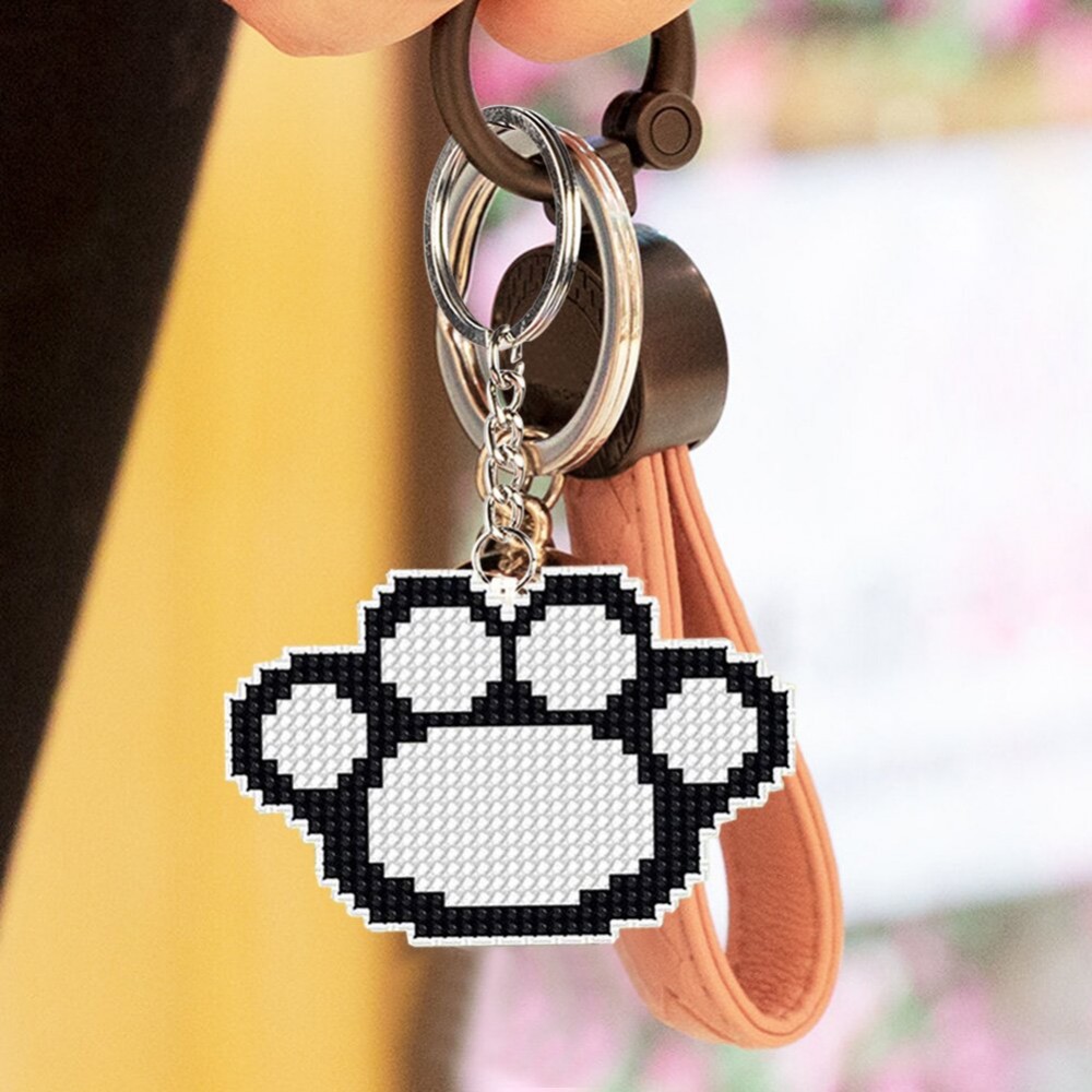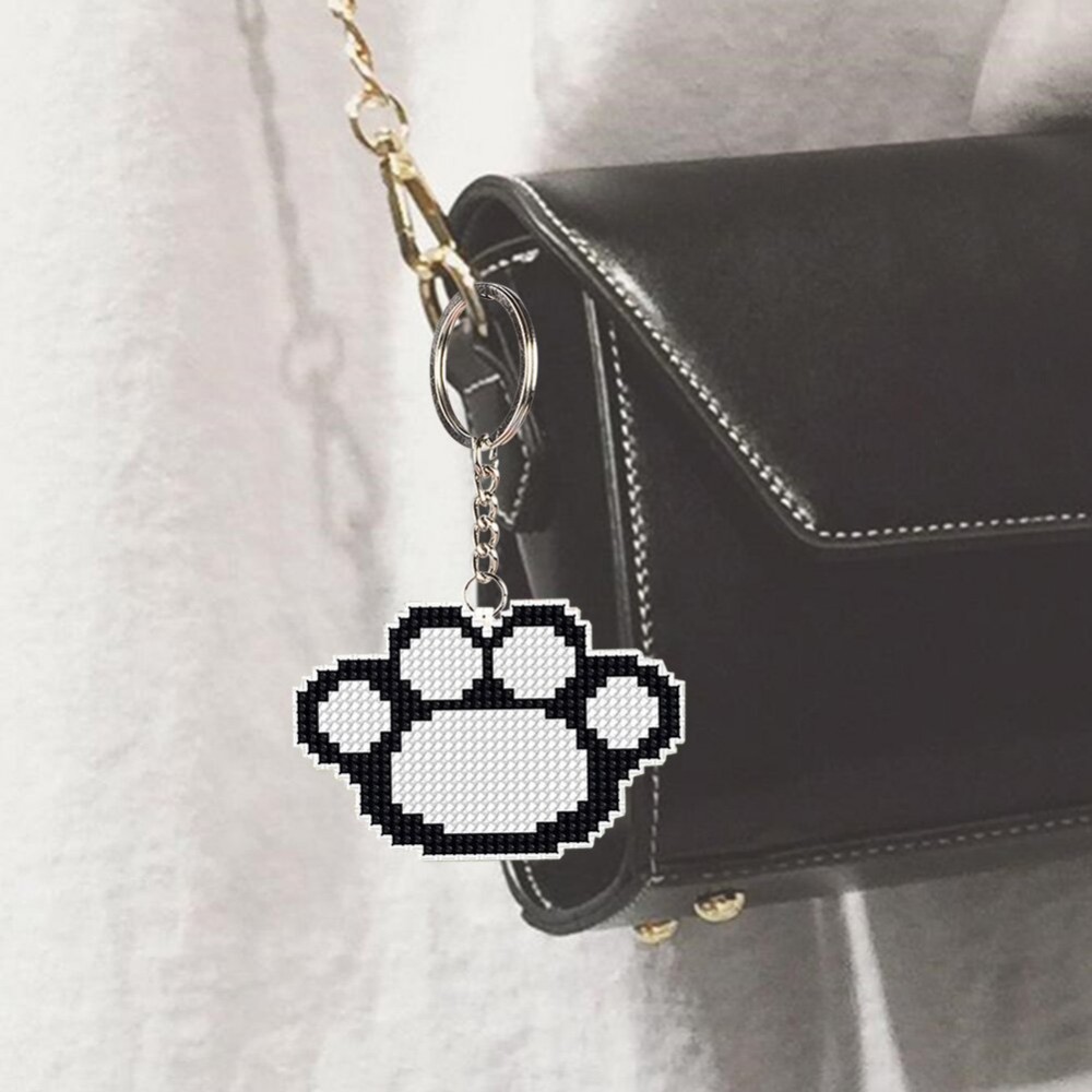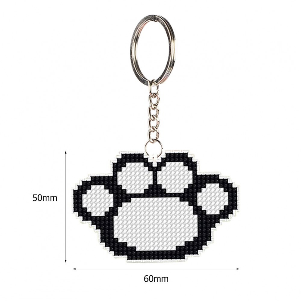 Stamped DIY Animal Paw Handmade Craft Bead Cross Stitch Keychain Printed Embroidery Needlework Key Ring Kit for Gift Backpack Pendant