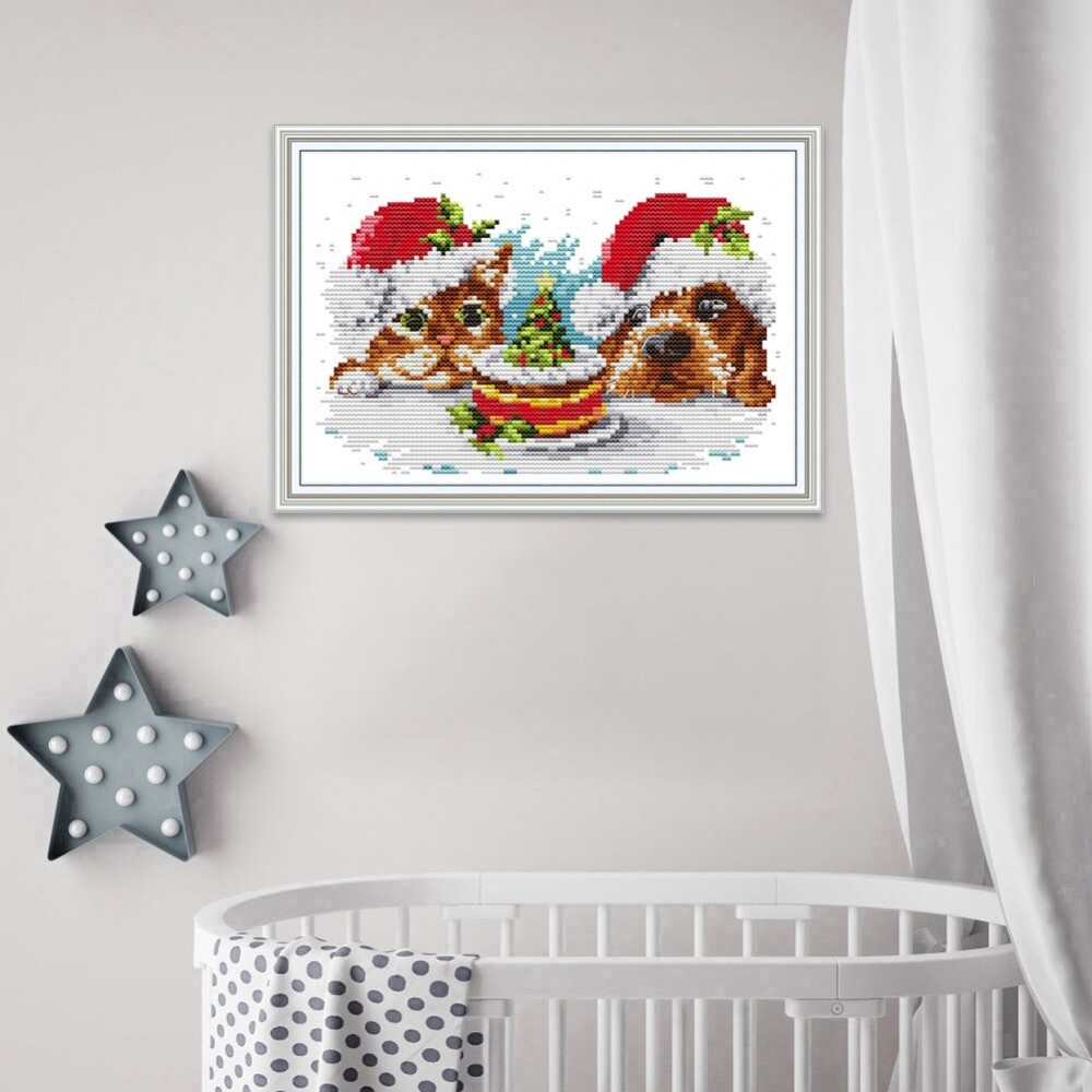 14CT Stamped Cartoon Animal DIY Cross Stitch Kits Embroidery Art Canvas Needlework Home Decor for Christmas Gift