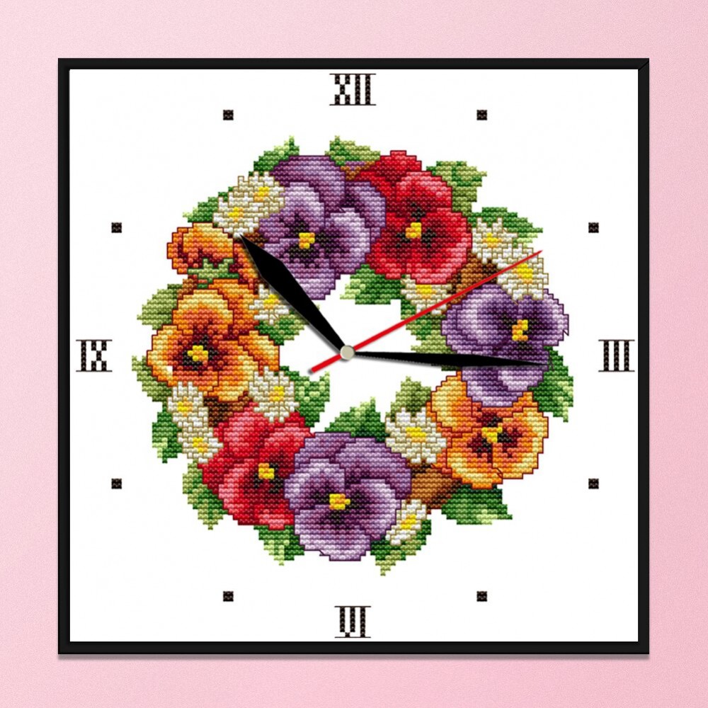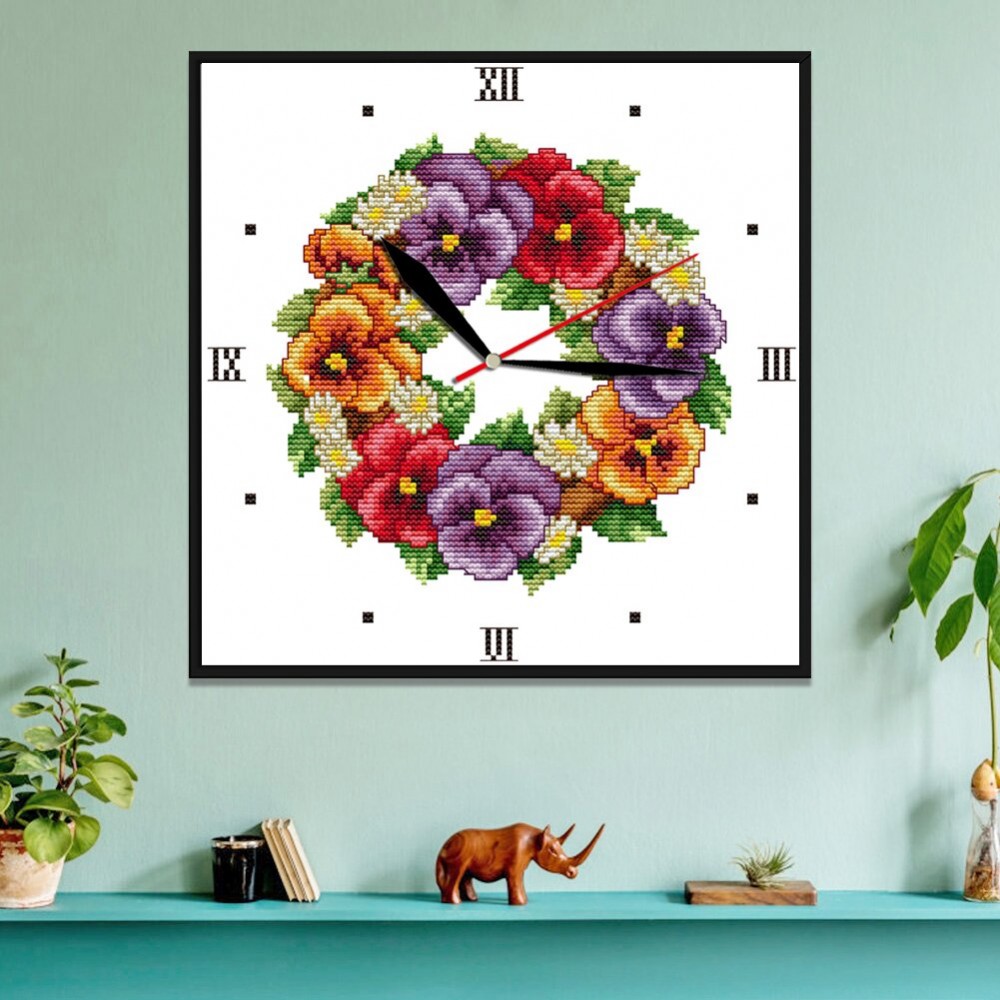 14CT Stamped Clock DIY Print Cross Stitch Kits Embroidery Art Canvas Needlework Home Decor for Christmas Gift