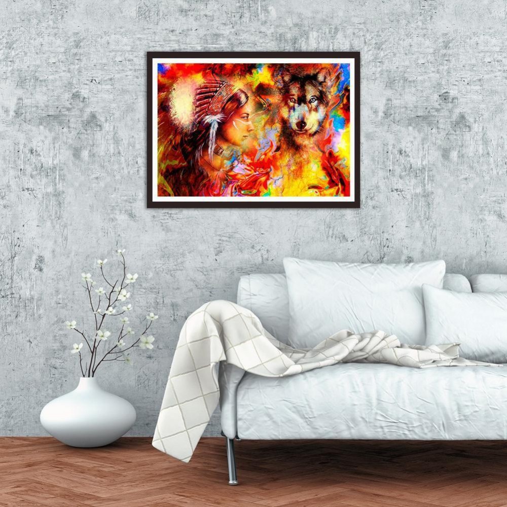 5D DIY Full Drill Diamond Painting Wolf Cross Stitch Embroidery Mosaic Kit Needlework Set Home Decoration