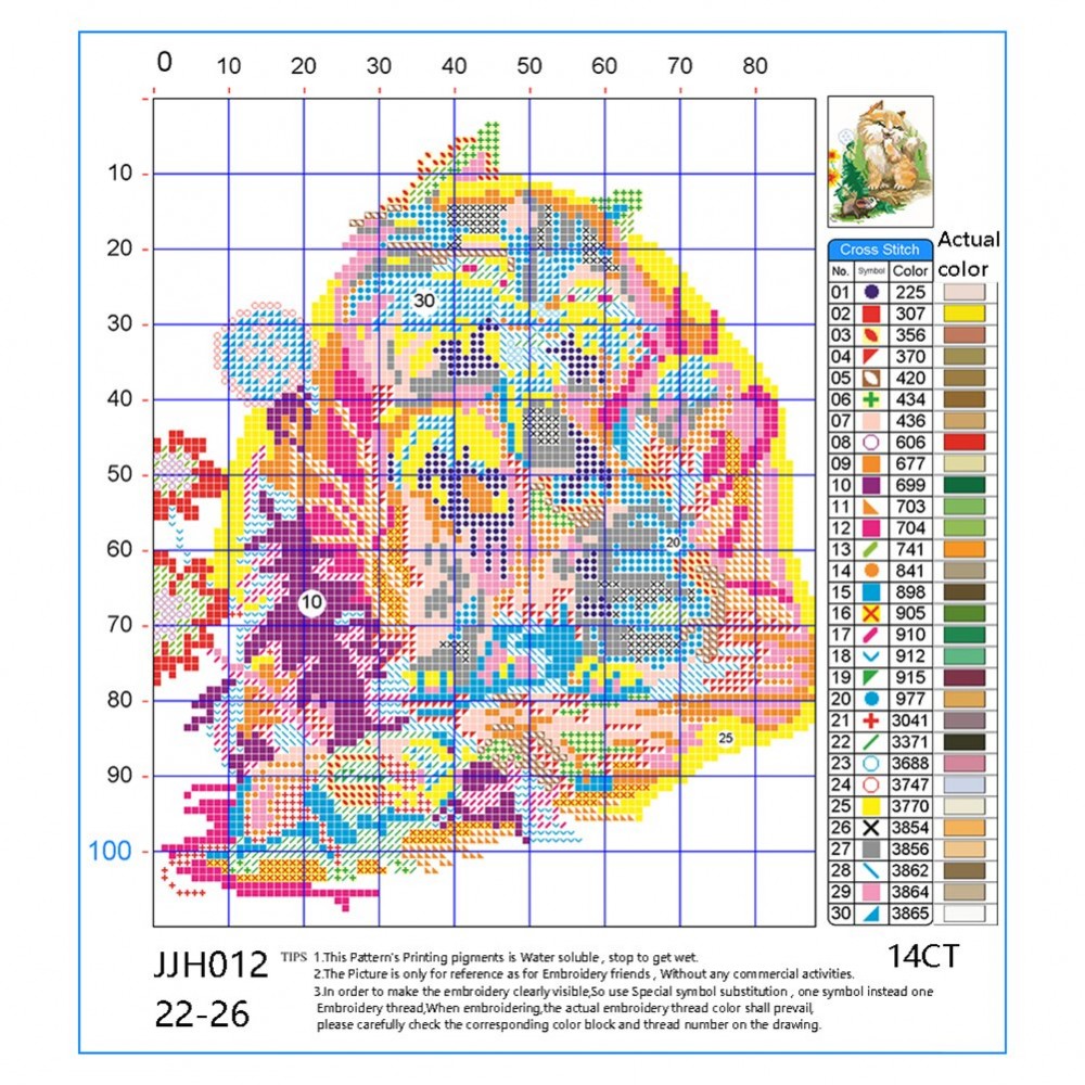 The color block in the drawing does not represent the color of the embroidery threads. Please carefully identify the symbol or the serial number corresponding to the color block and select the threads number according to the requirements of the serial number.