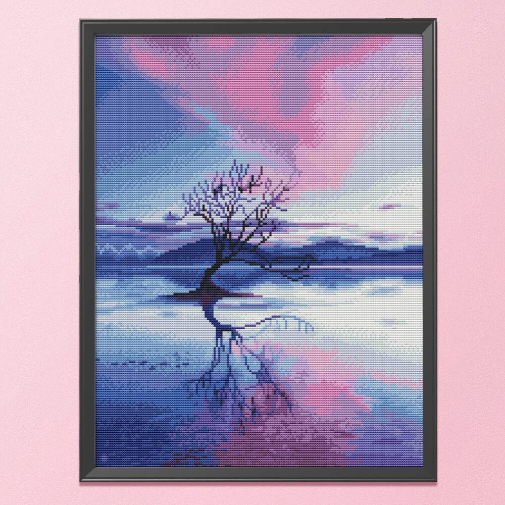 11CT Stamp Cross Stitch Needlework Embroidery Set (JL095 Reflection Tree)