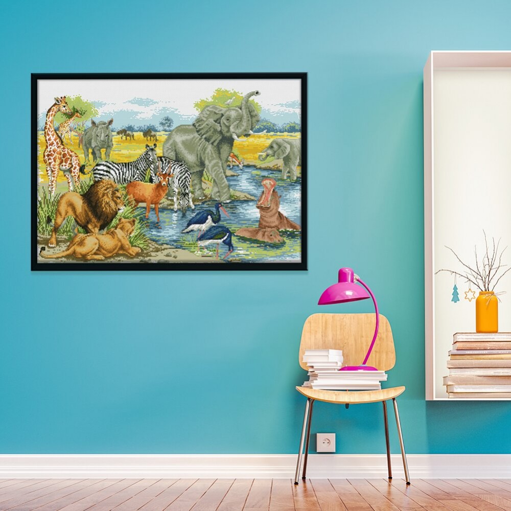 Animals Cotton Thread Cross Stitch Kits Printed Canvas DIY Embroidery Needlework Handwork Crafts 11CT Stamped Home Decor