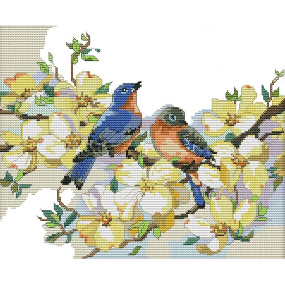 Birds And Flowers - 14CT Stamped Cross Stitch - 39*33cm