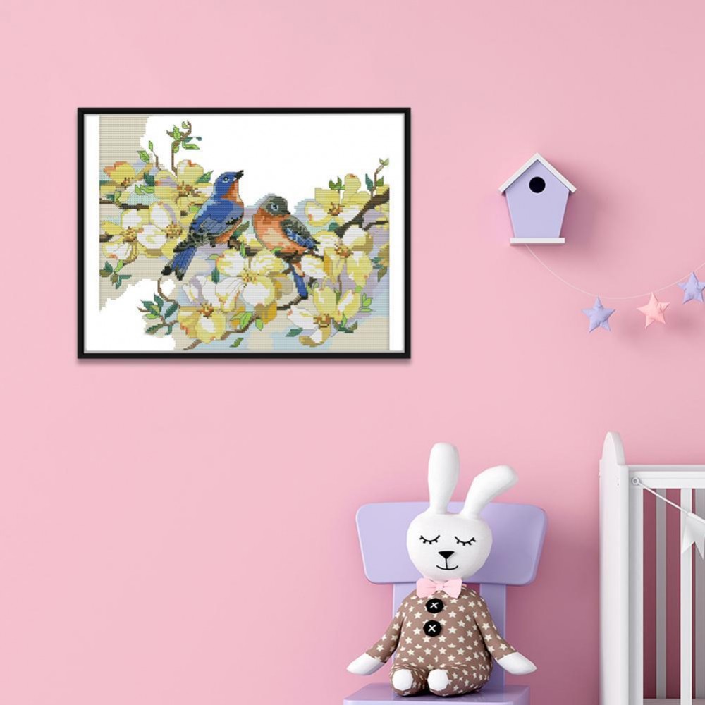 Birds Stamped Cross Stitch Kits Embroidery Sets Ecological Cotton Thread 2-Strand 14CT Pre Printed Fabric Needlework DIY Kit Crafts Home Decoration