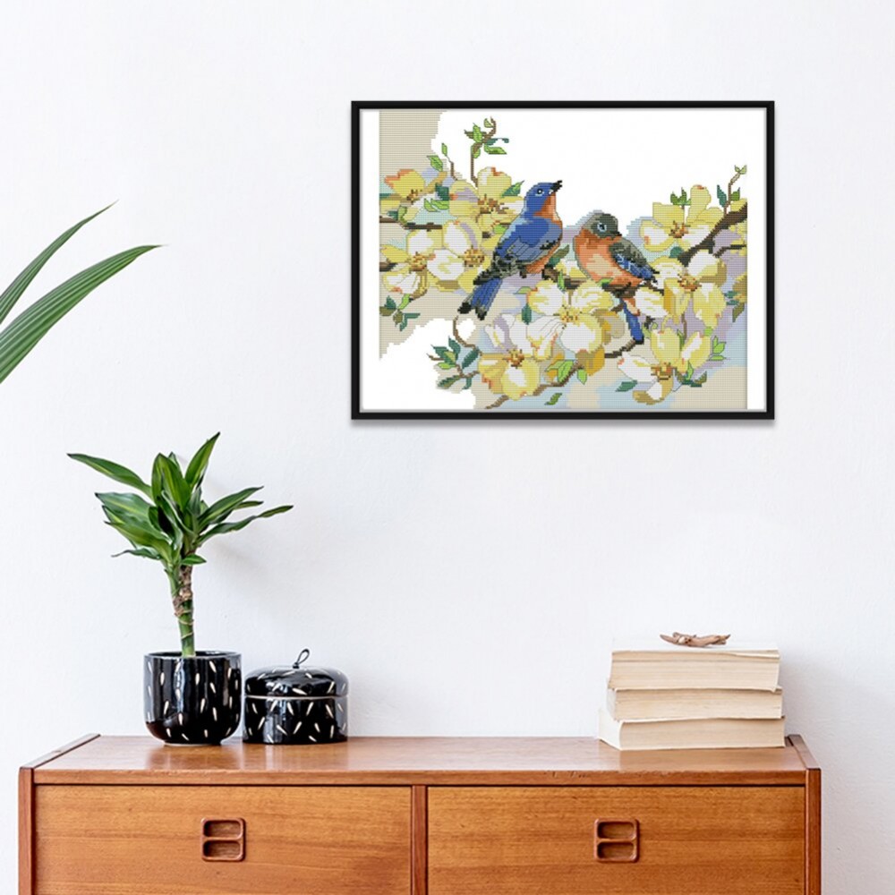Birds Stamped Cross Stitch Kits Embroidery Sets Ecological Cotton Thread 2-Strand 14CT Pre Printed Fabric Needlework DIY Kit Crafts Home Decoration