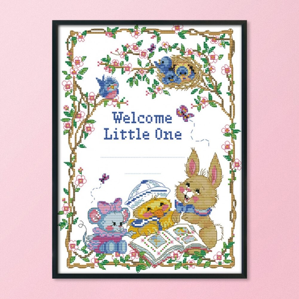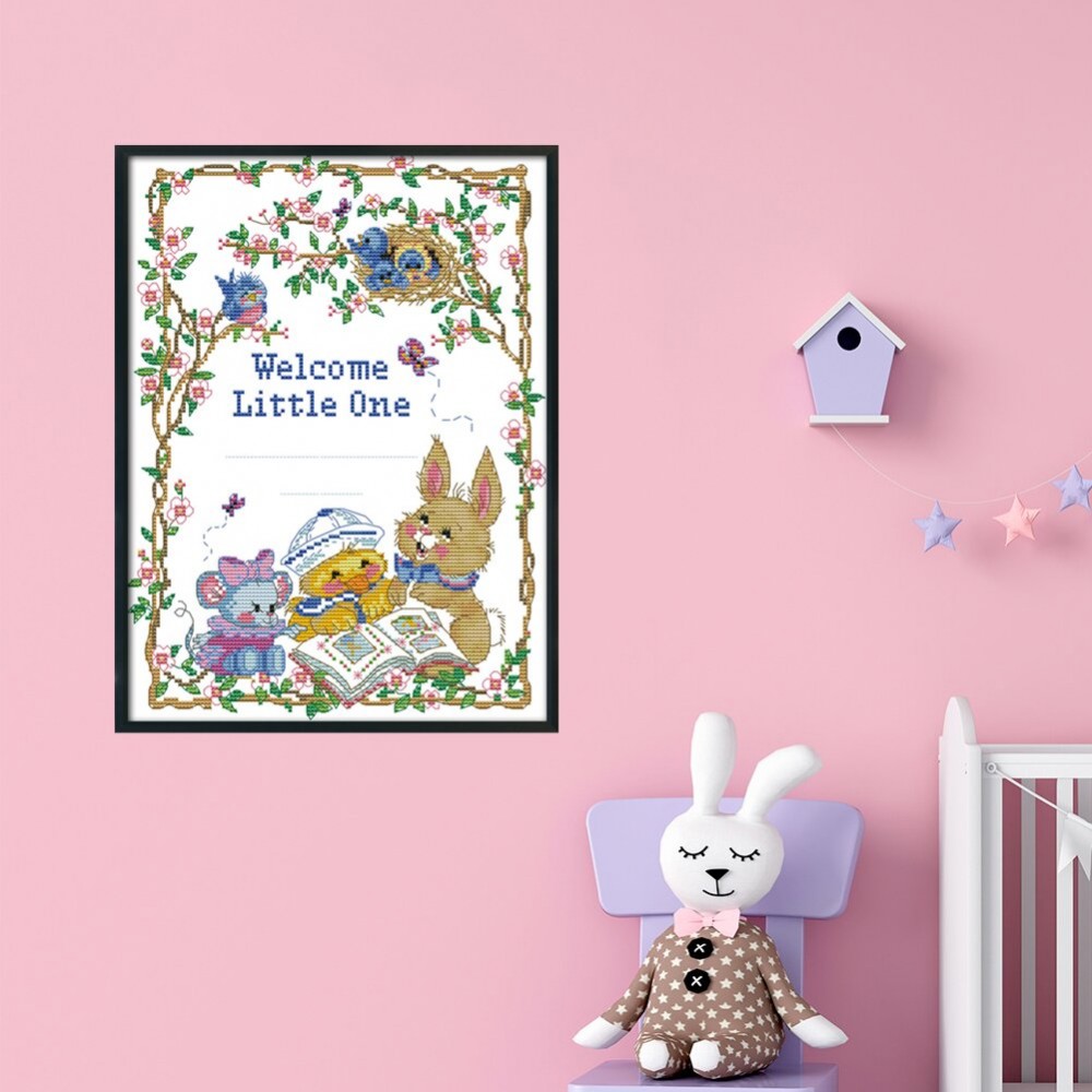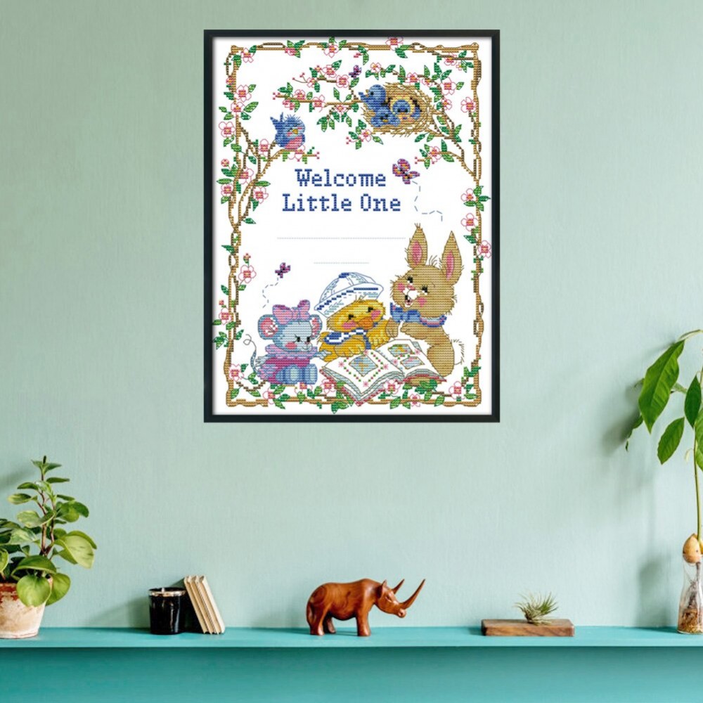 14CT Stamped Cartoon Birth Certificate DIY Print Cross Stitch Kits Embroidery Art Canvas Needlework Home Decor for Christmas Gift