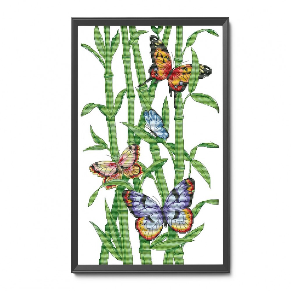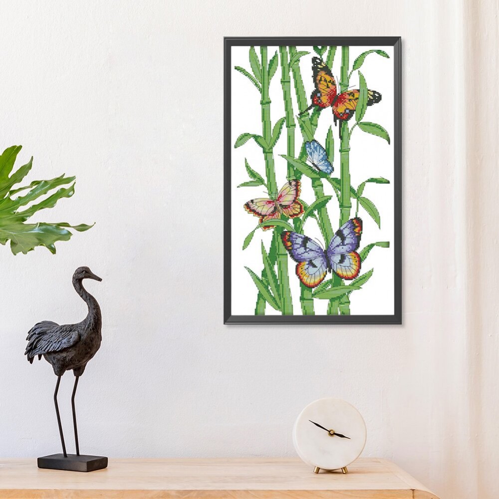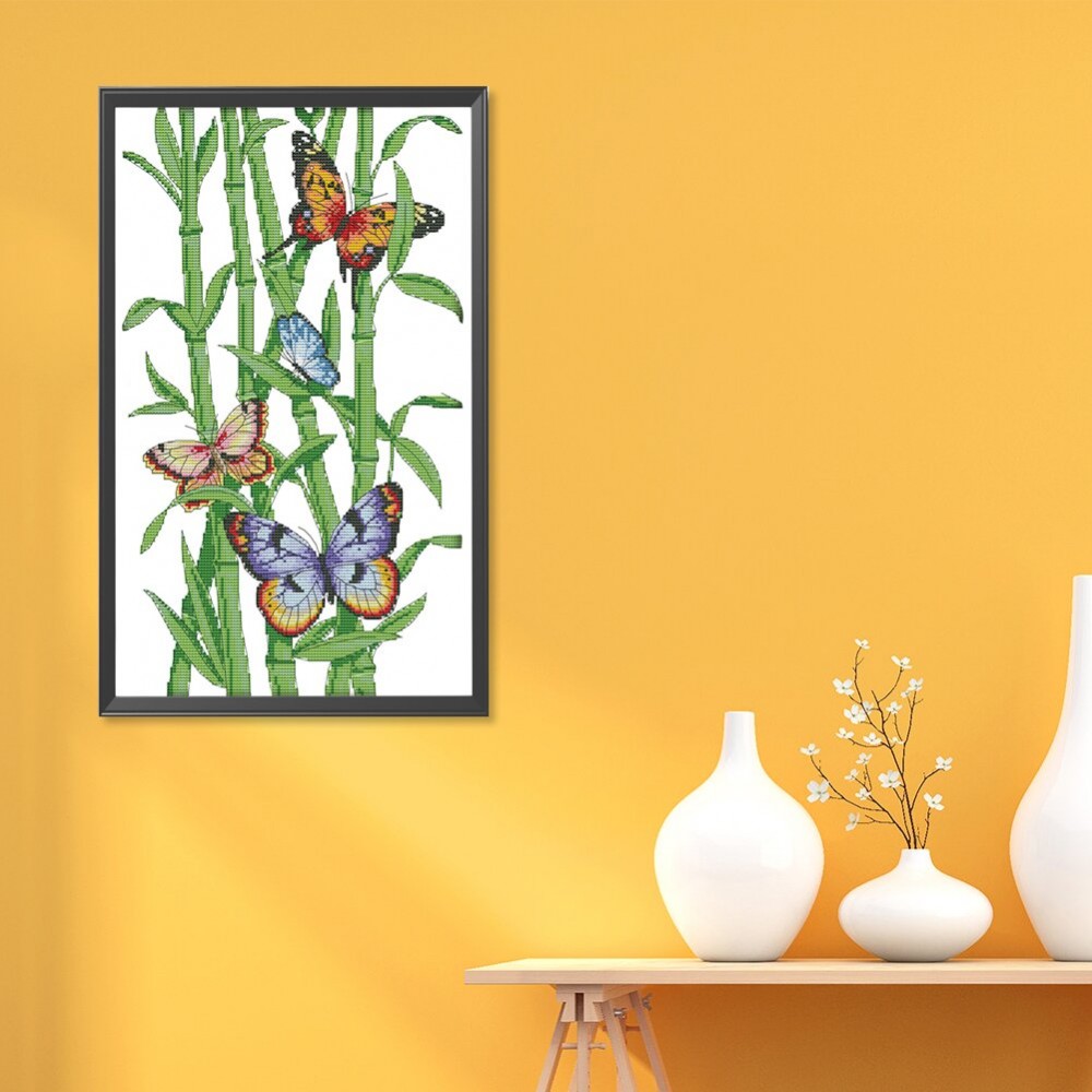 Stamped Cross Stitch Kits Butterflies Plants 2-Strand Cotton Thread 14CT Pre Printed Fabric Embroidery Crafts DIY Needlepoint Sets Needlework Home Decoration Gift
