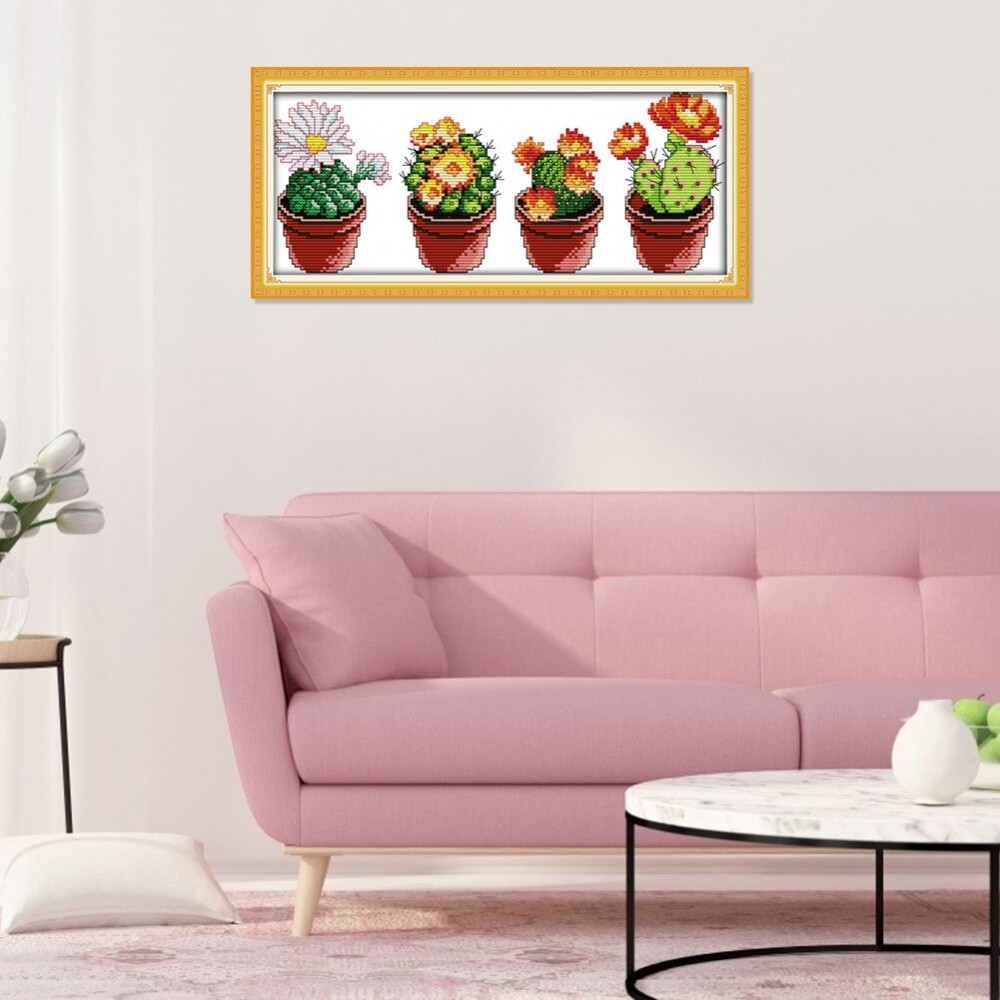 Plant Series 14CT Stamped Cross Stitch Kits Printed Pattern Crafts DMC Sewing Needlework Embroidery Set Home Wall Art Decor