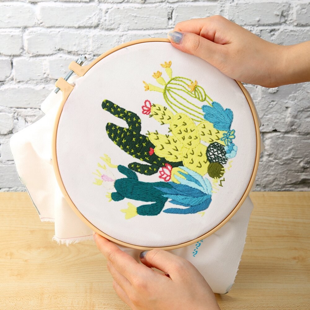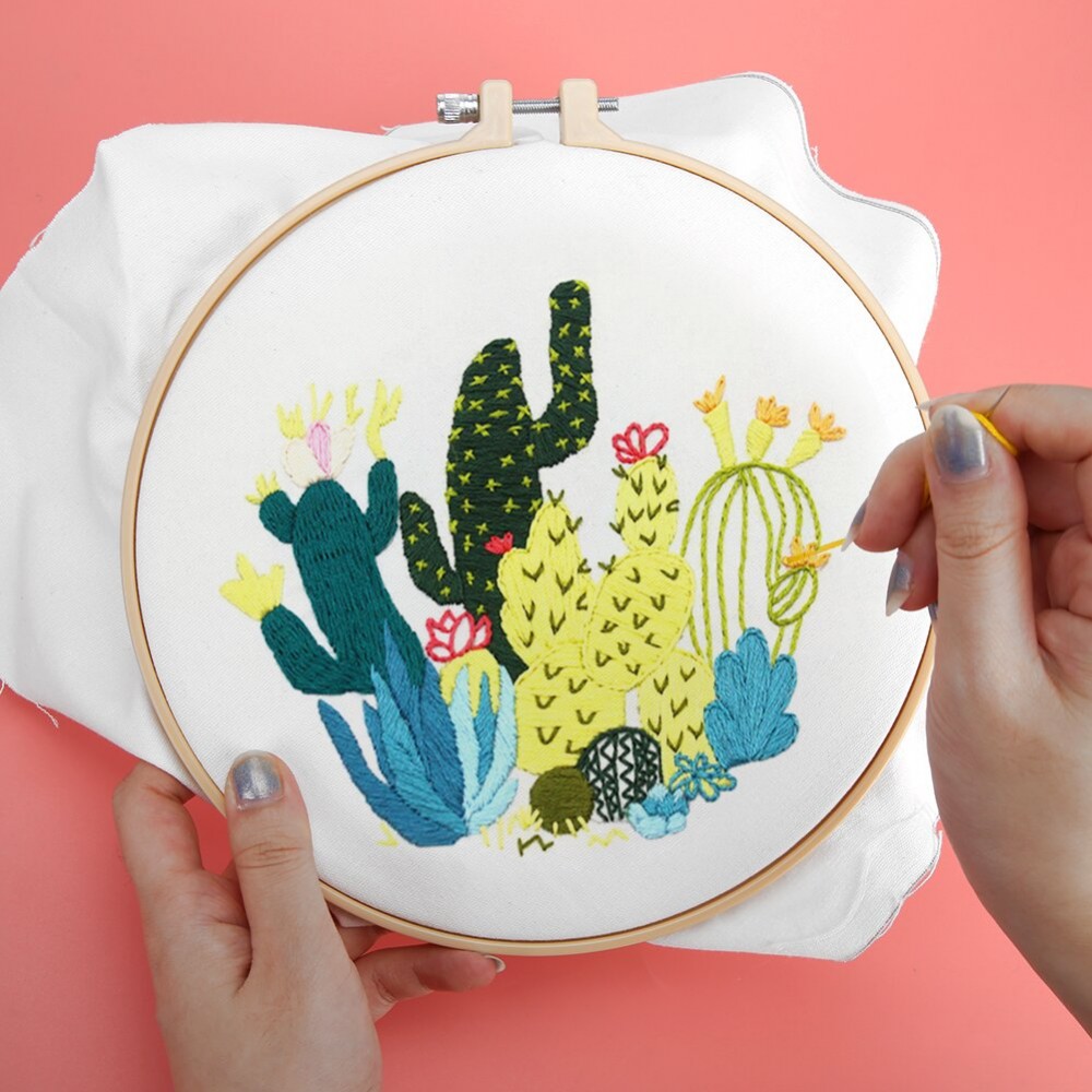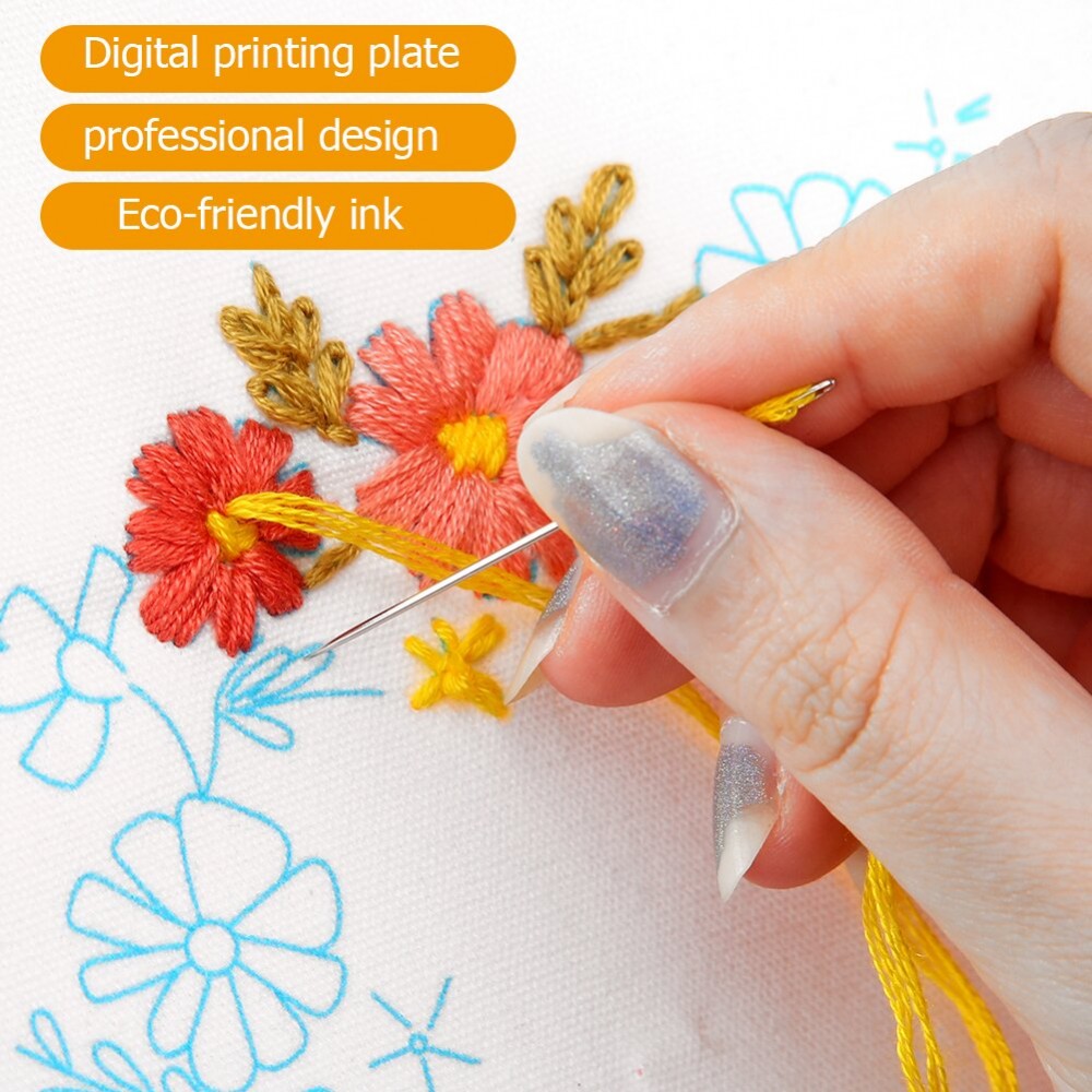 1. Embroidery Beginner kit, including all necessary tools: Printed embroidery cloth, embroidery thread, embroidery frame, embroidery needle, instruction manual.