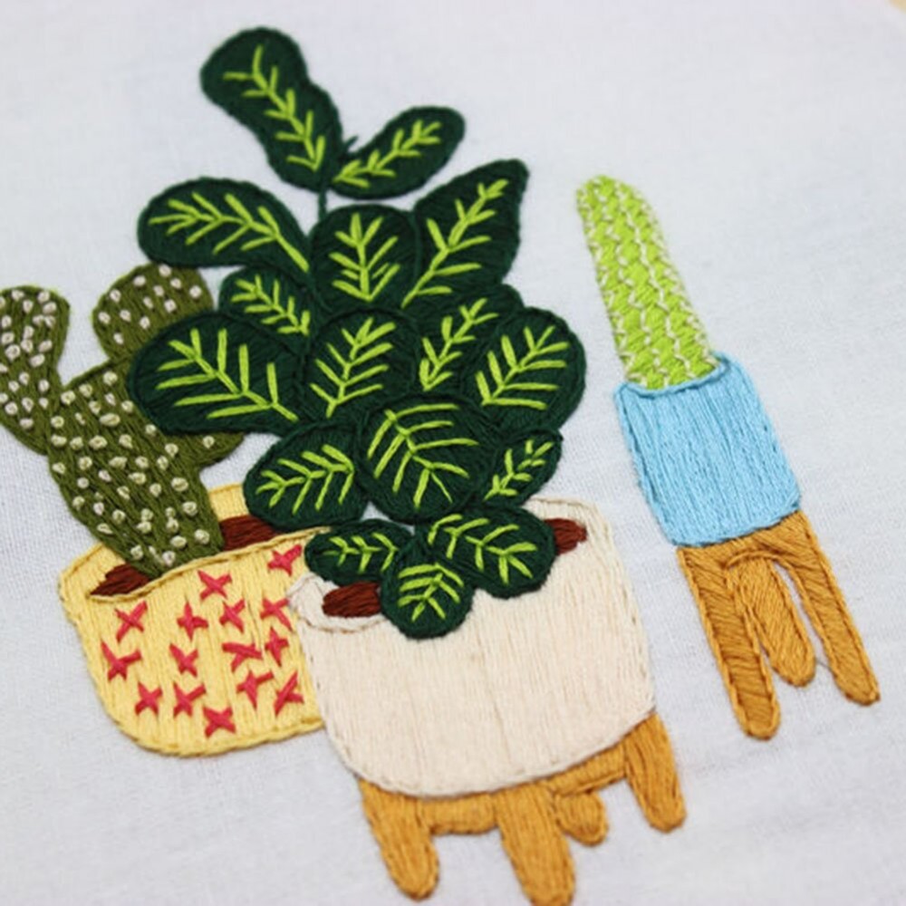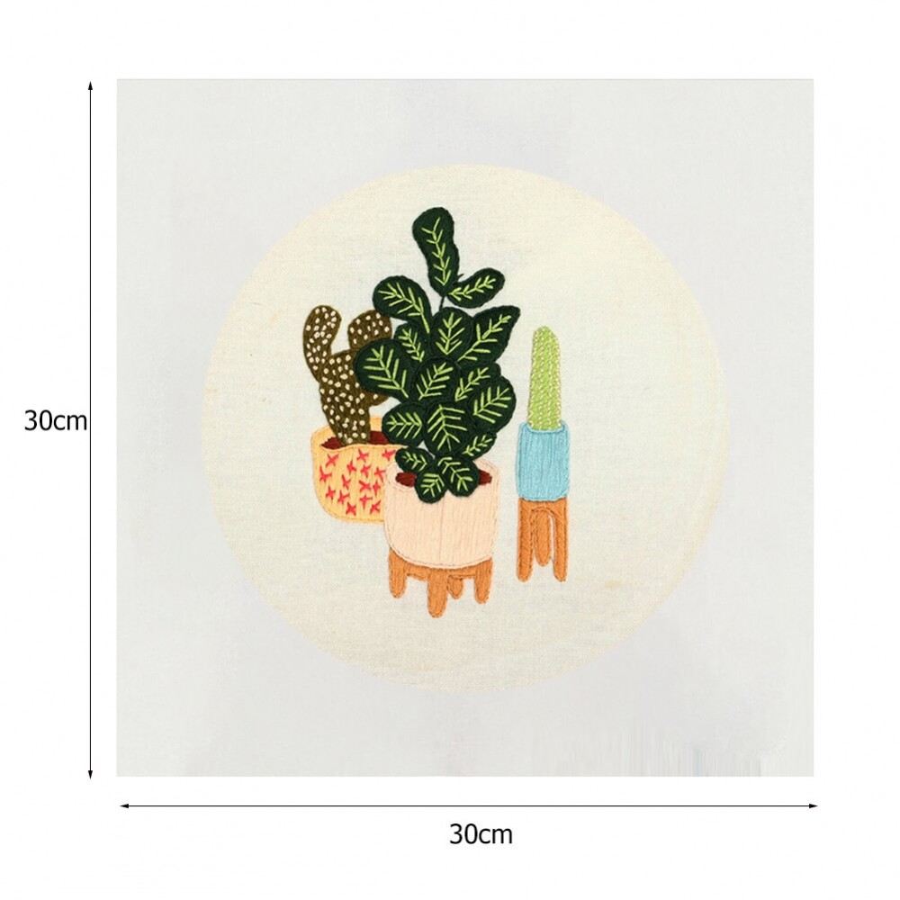 30 X 30cm For Beginner DIY Cute Cactus Embroidery Kit Needlework Cross Stitch Handwork Home Decoration Art Craft
