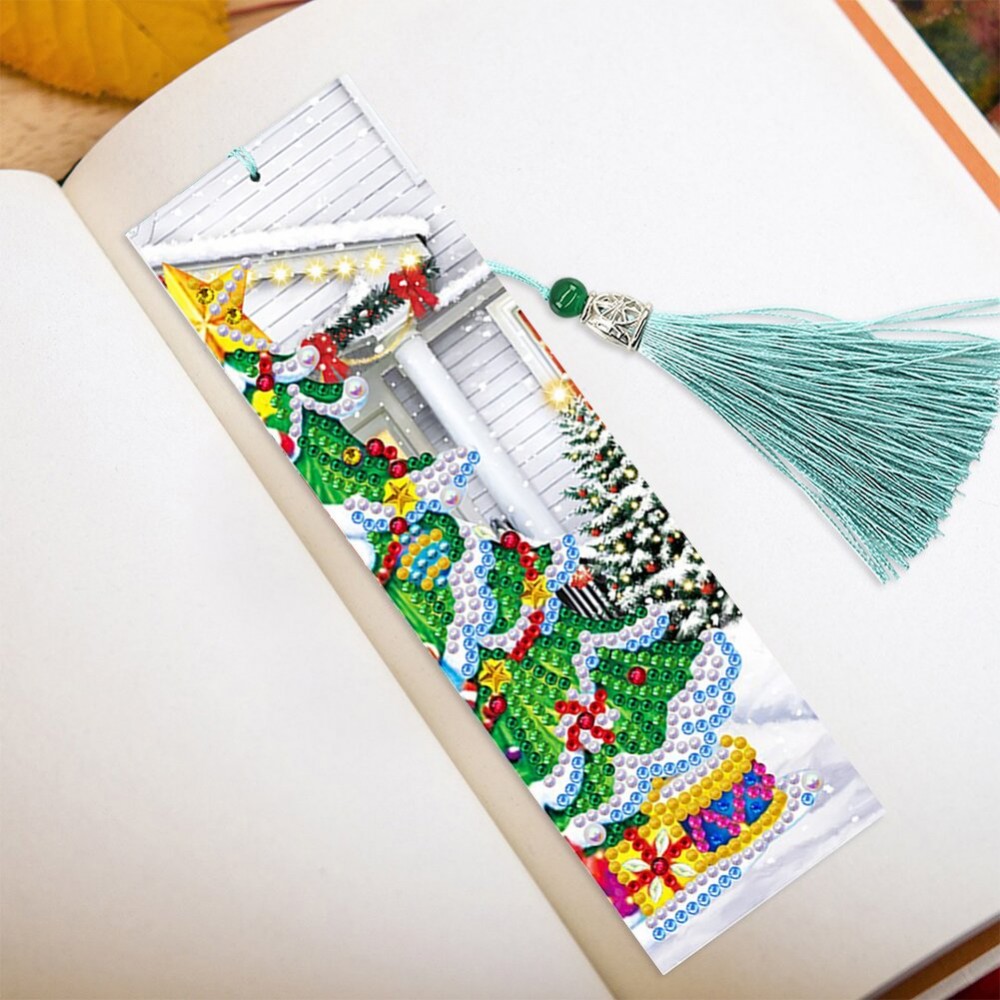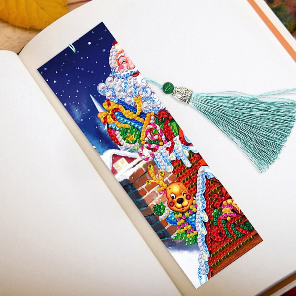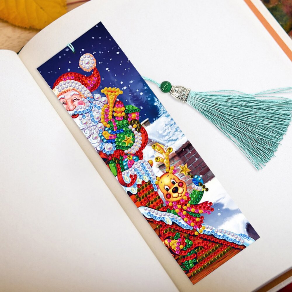 4pcs Diamond Painting Bookmark 5D DIY Christmas Diamond Art Leather Tassel Book Marks Cross Stitch Embroidery Mosaic Kit