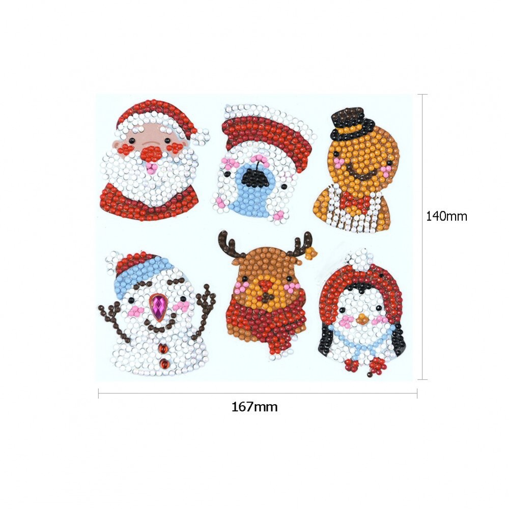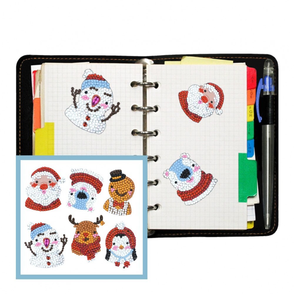 6pcs DIY Crafts 5D Diamond Painting Kit Colorful Cute Santa Claus Snowman Self-adhesive Rhinestone Stickers Computer Book Phone Cup Decor