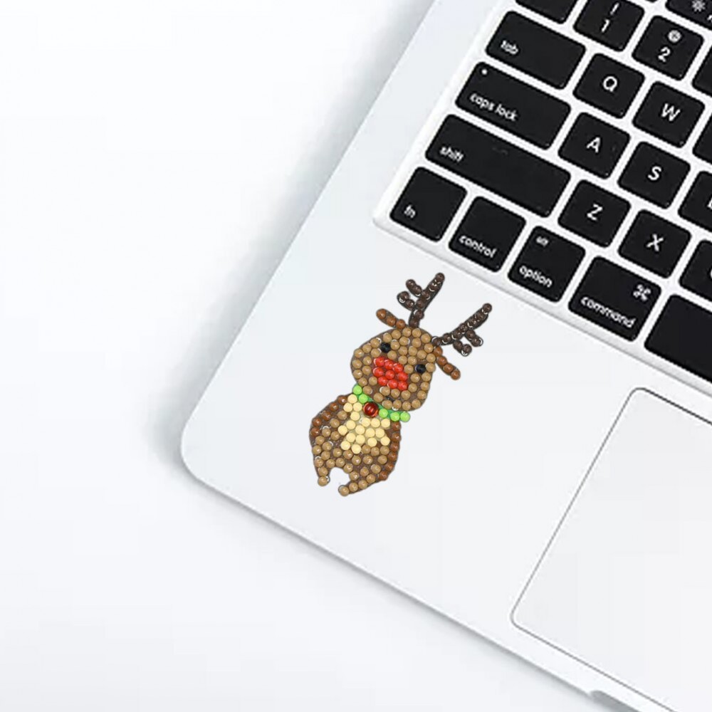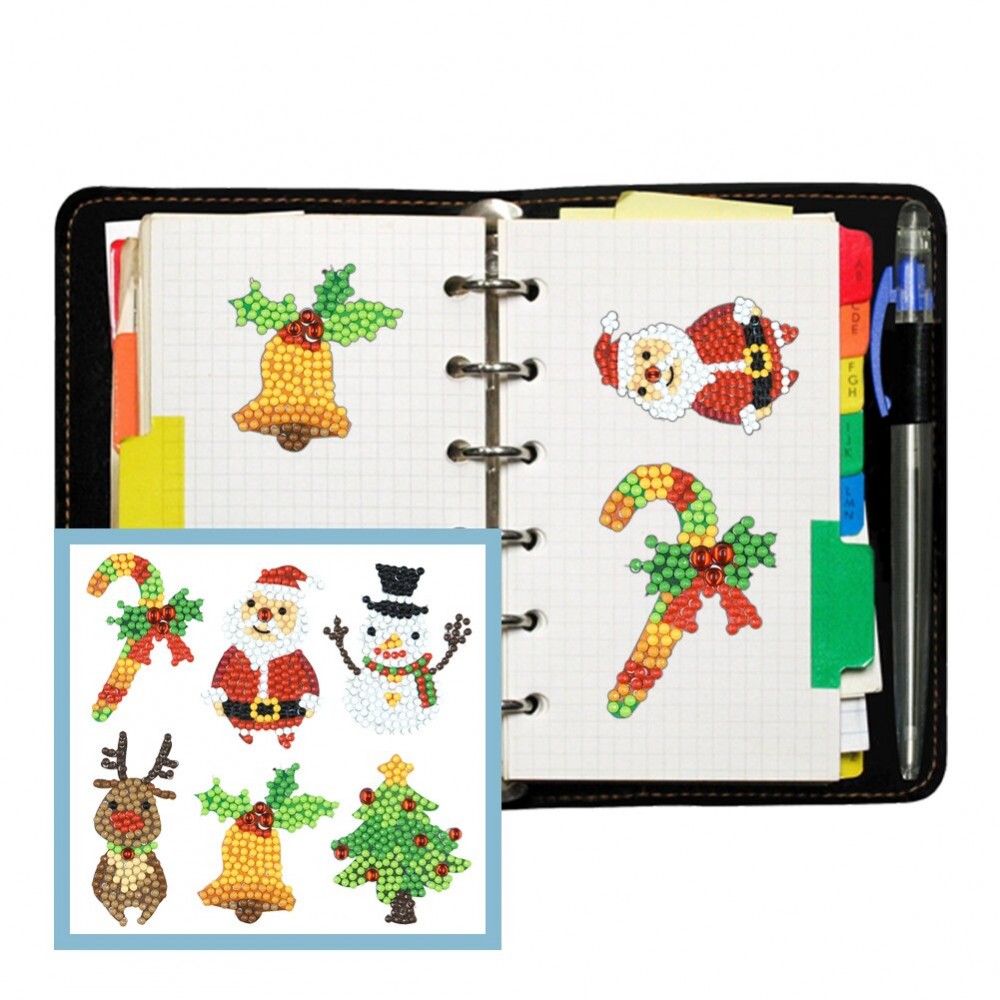 6pcs Adhesive Cute Stickers Mosaic Diamond Painting Kit Colorful Santa Claus Animal DIY Round Rhinestone for Phone Book Cup Christmas Decoration
