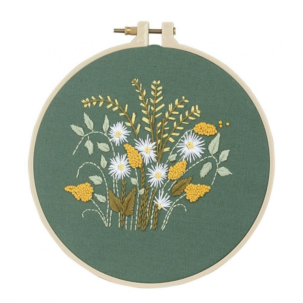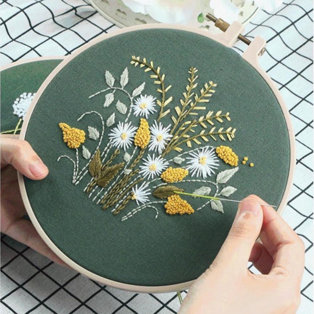 1. Embroidery Beginner kit, including all necessary tools: Printed embroidery cloth, embroidery thread, embroidery frame, embroidery needle, instruction manual.