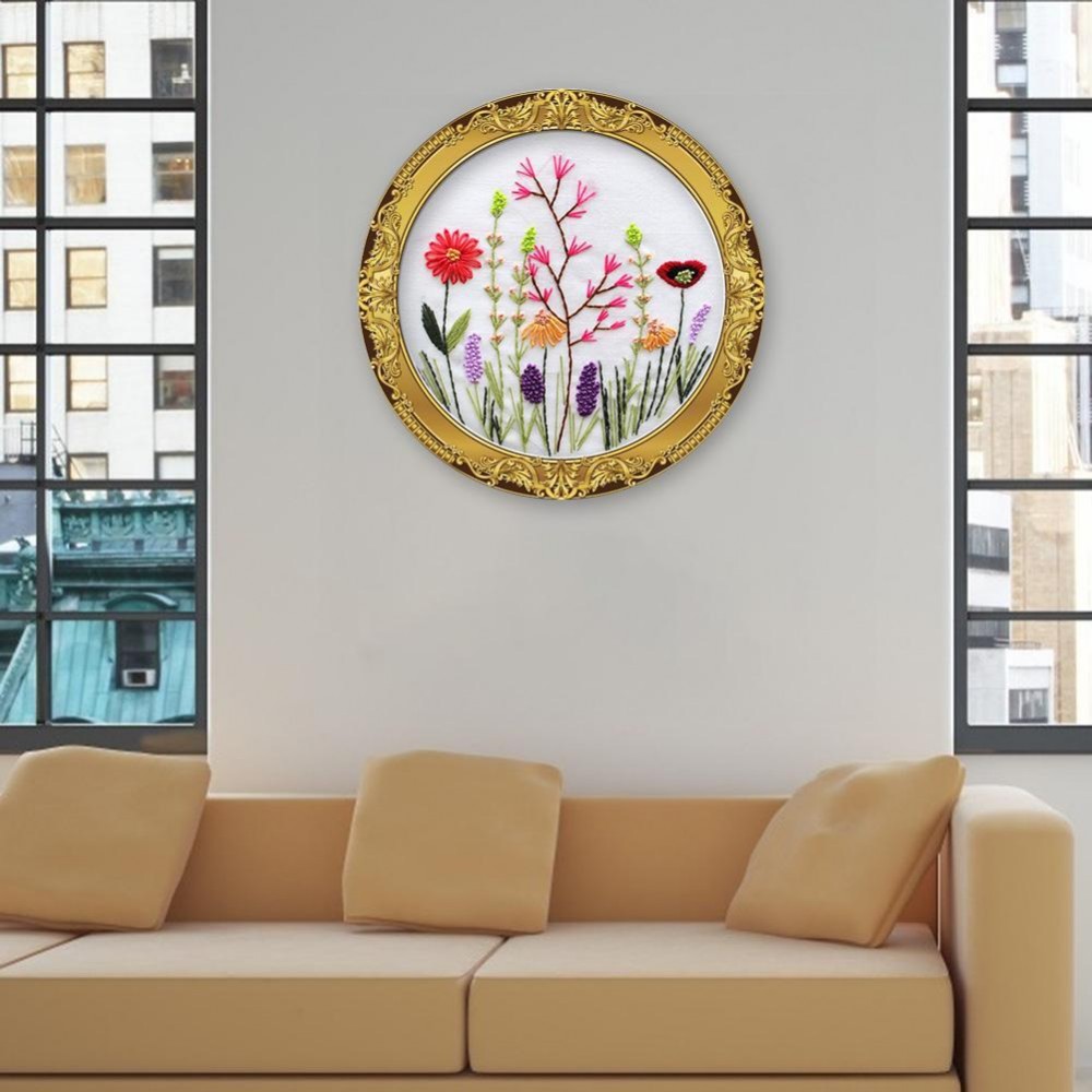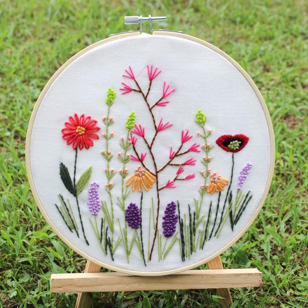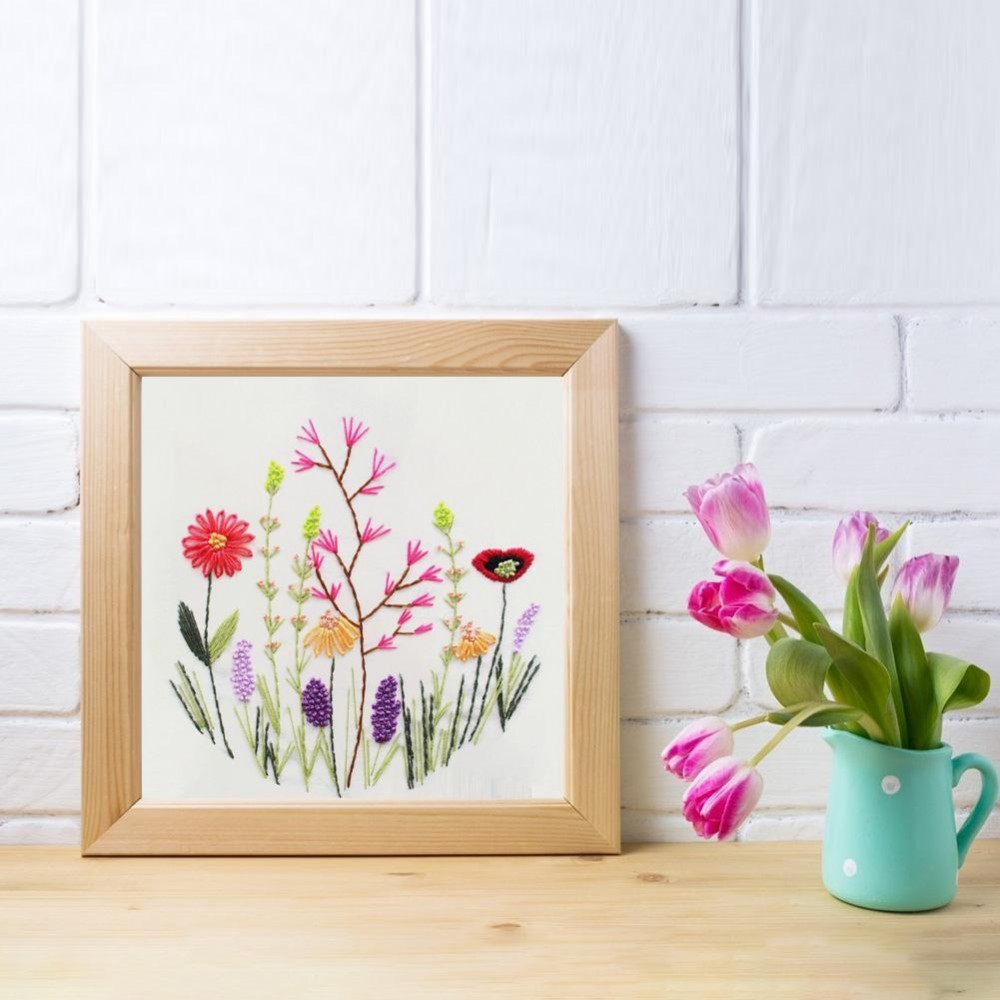 1. Embroidery Beginner kit, including all necessary tools: Printed embroidery cloth, embroidery thread, embroidery frame, embroidery needle, instruction manual.