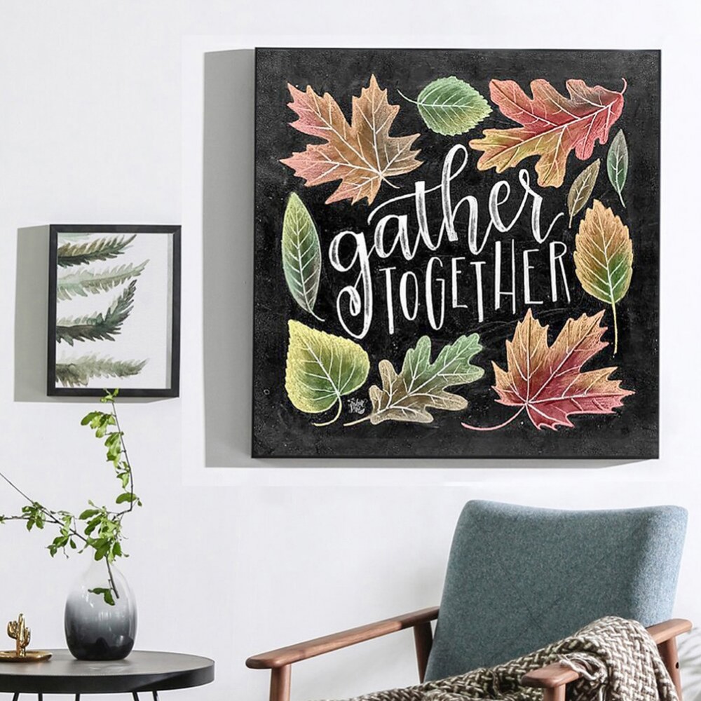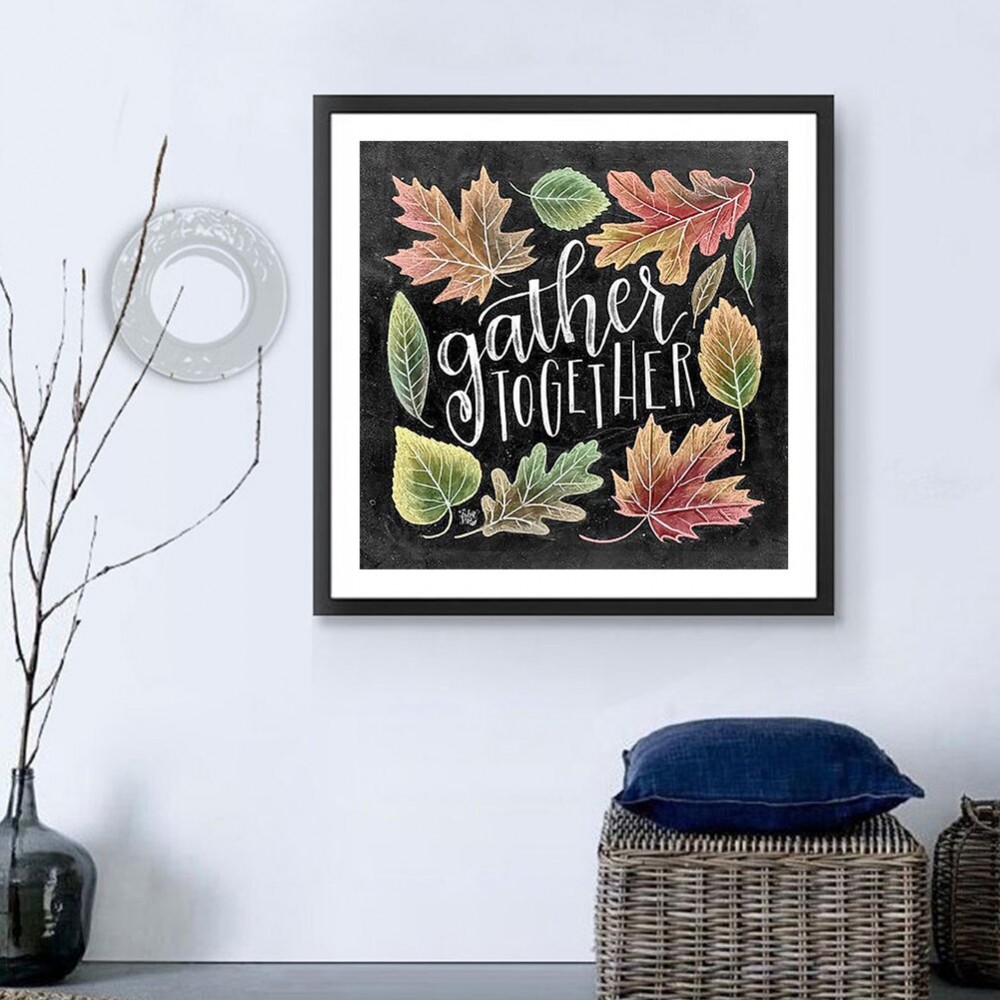 12x12 inch 5D DIY Full Round Drill Diamond Painting Blackboard Leaves Mosaic Wall Art Picture of Rhinestone Kit Home Decoration
