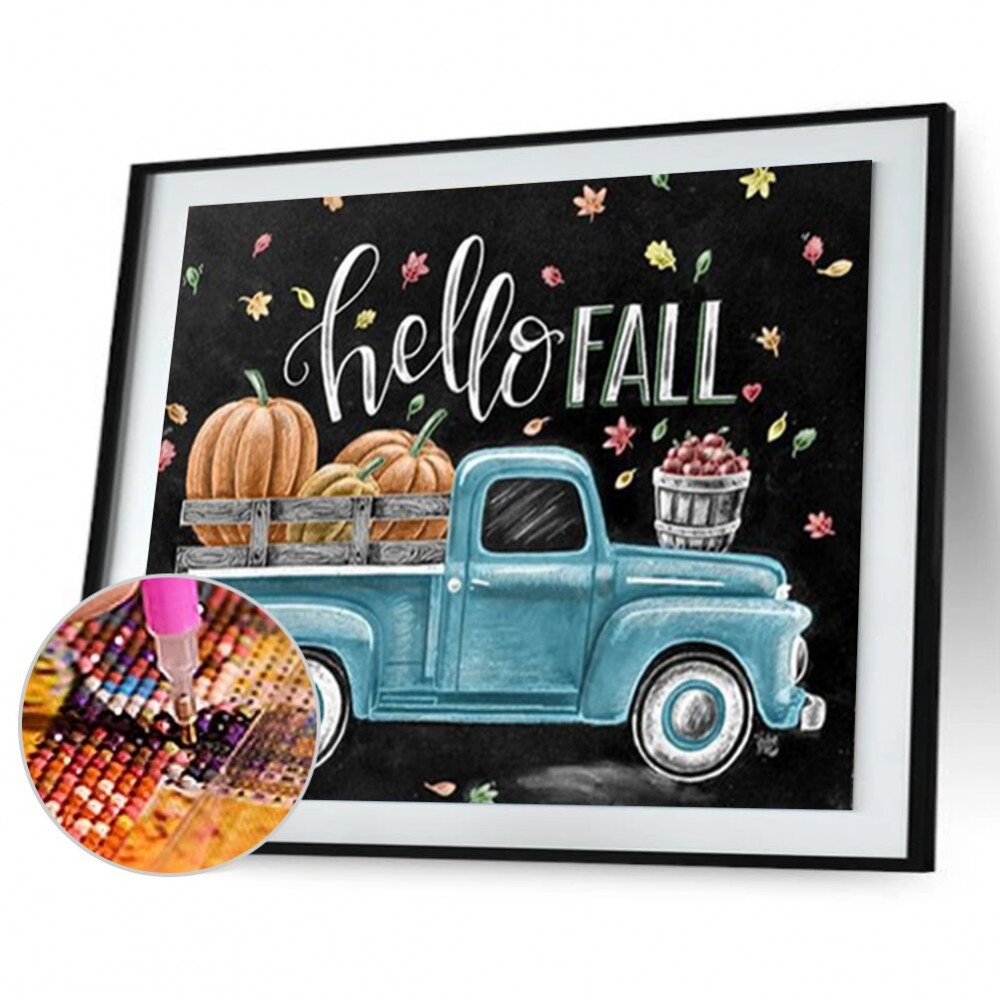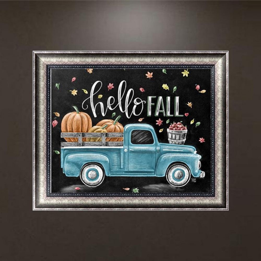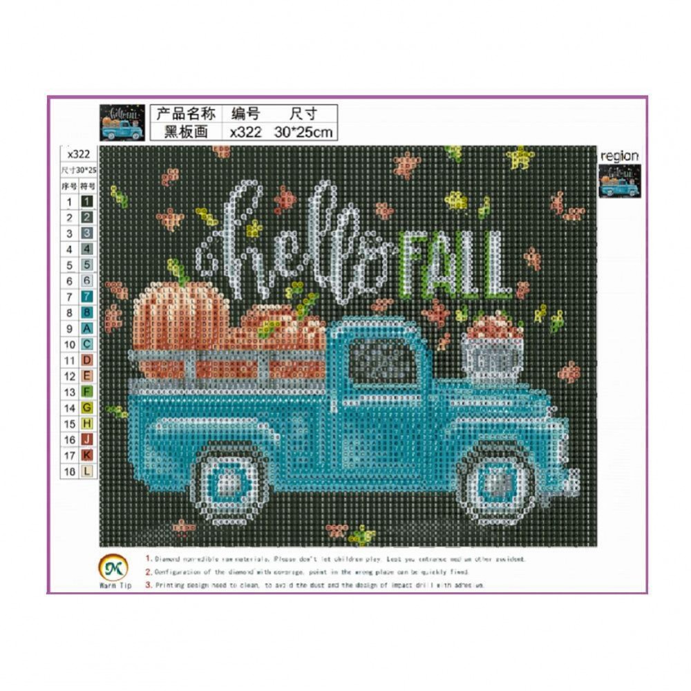 Blue Car Blackboard Drawing 5D Diamond Painting Cross Stitch Wall Decor