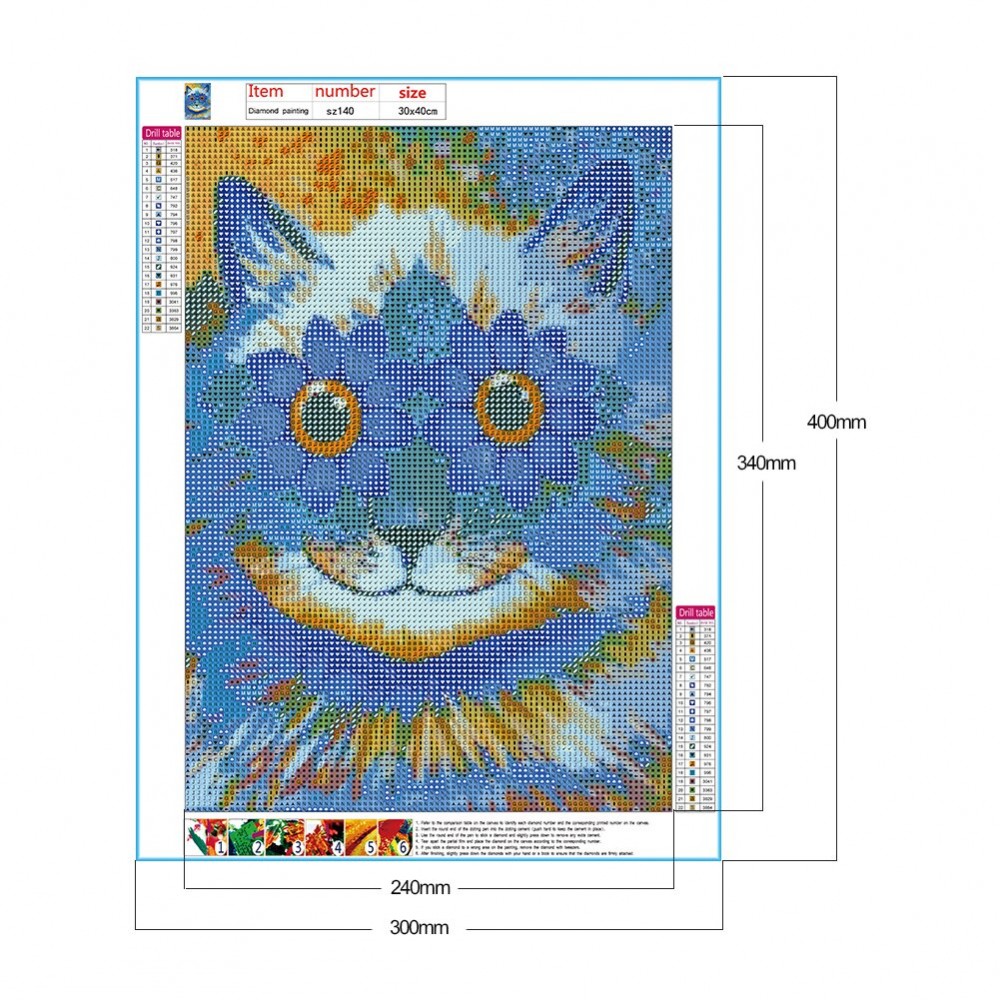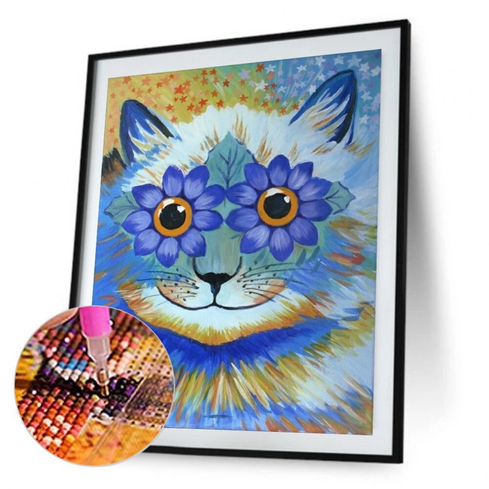 DIY Mosaic Painting Kit Full Rhinestone Round Drill Diamond Picture Resin Color Cat Art Work Pet Drawing for Wall Decor
