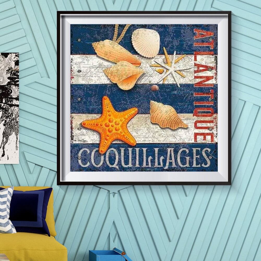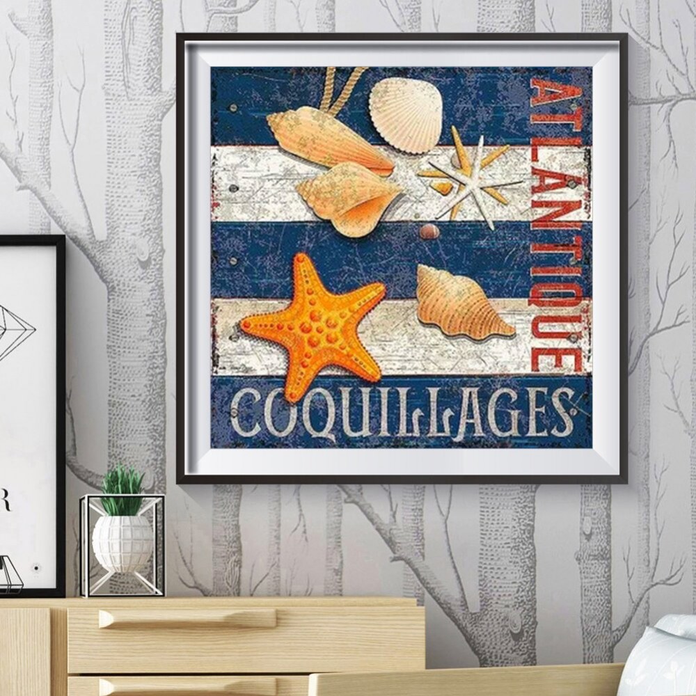 Conch Shell Picture Rhinestones 5D DIY Full Round Drill Diamond Painting Handmade Mosaic Wall Craft Kits Gift Home Decor