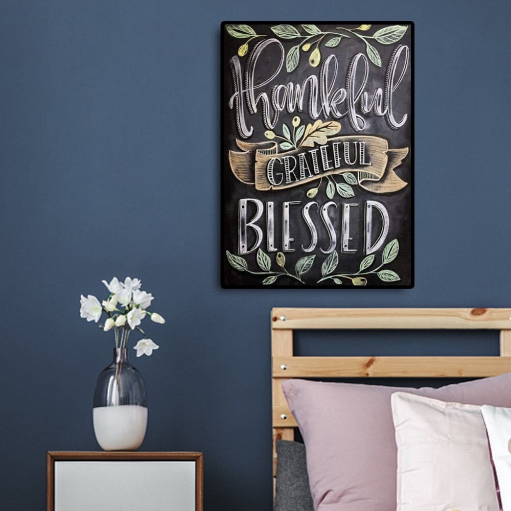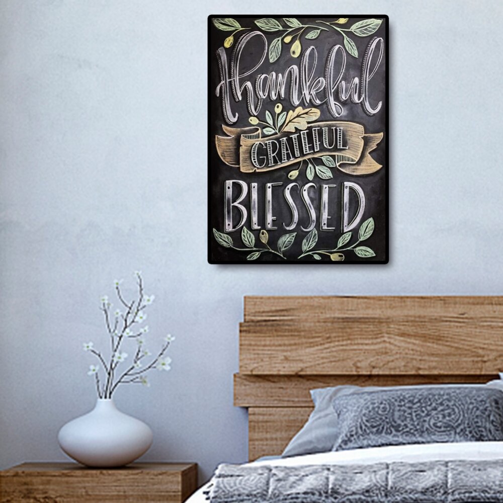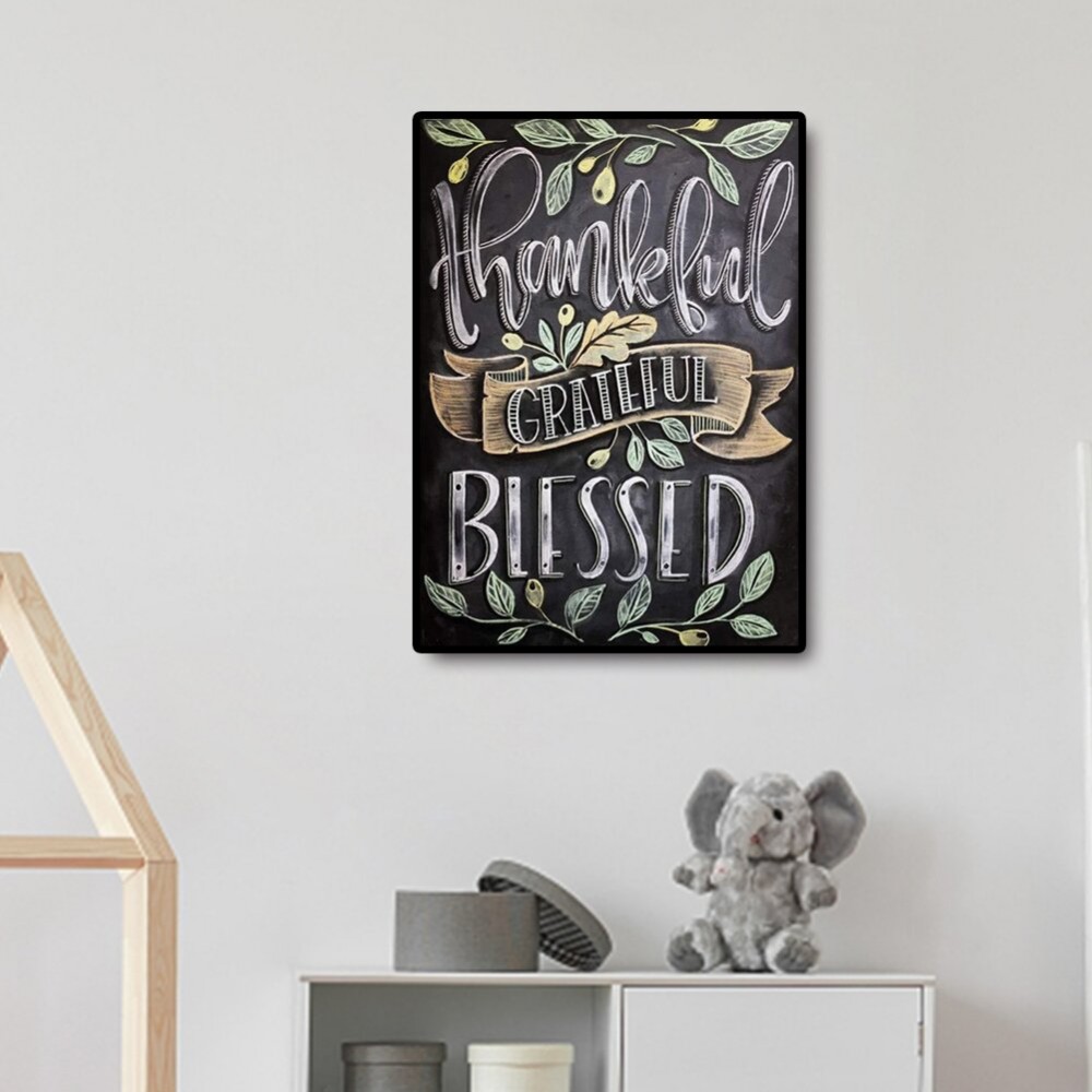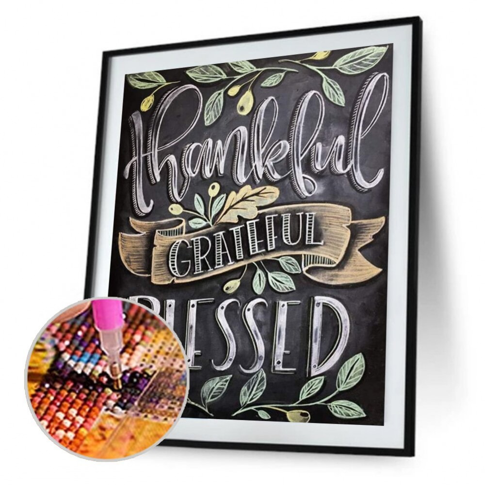 5D DIY Full Drill Round Diamond Painting Letter Blessed Cross Stitch Embroidery Mosaic Kit Home Decor Needlework