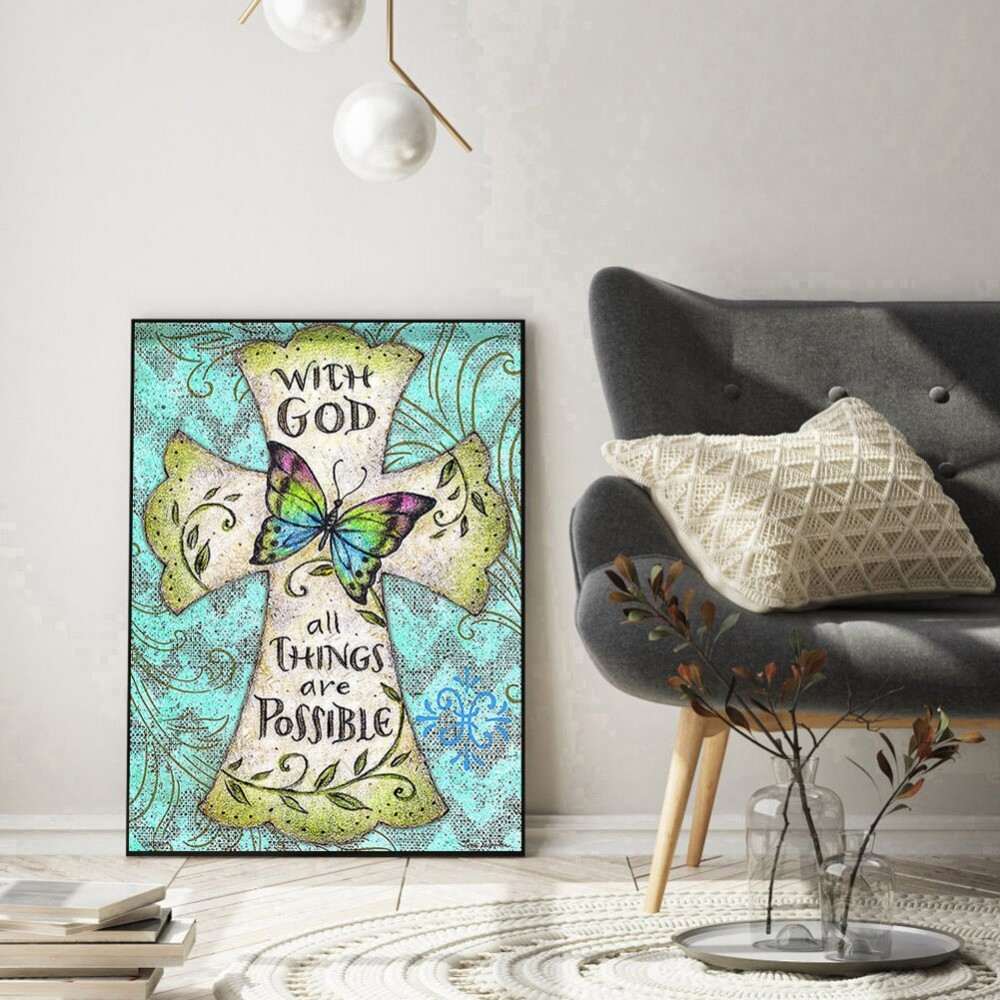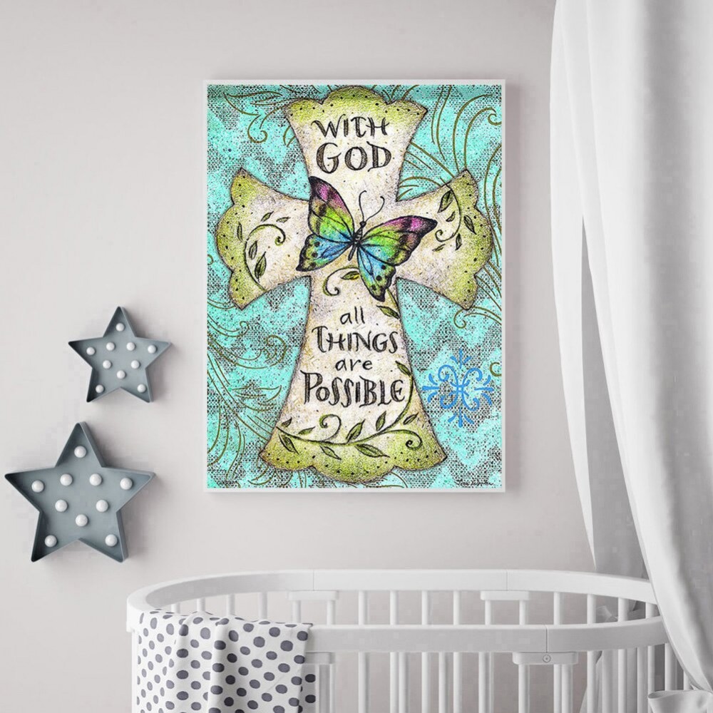 16x20 Inch 5D DIY WITH GOD all THINGS are POSSIBLE Diamond Painting Full Square Drill Picture of Rhinestone Embroidery Mosaic Cross Stitch Kit Home Decoration