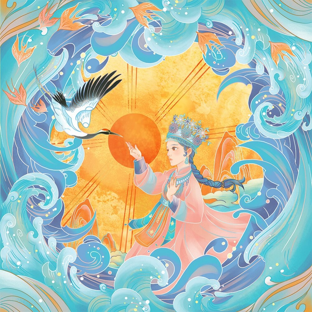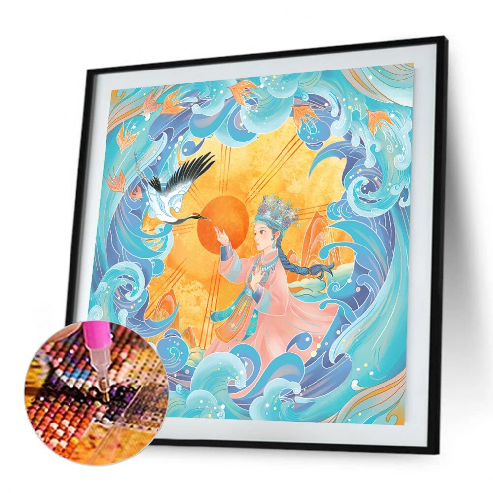 Full Drill Round Rhinestone Drawing Color Crane Animal Girl DIY Room Decor Painting Kit Mosaic Resin Picture
