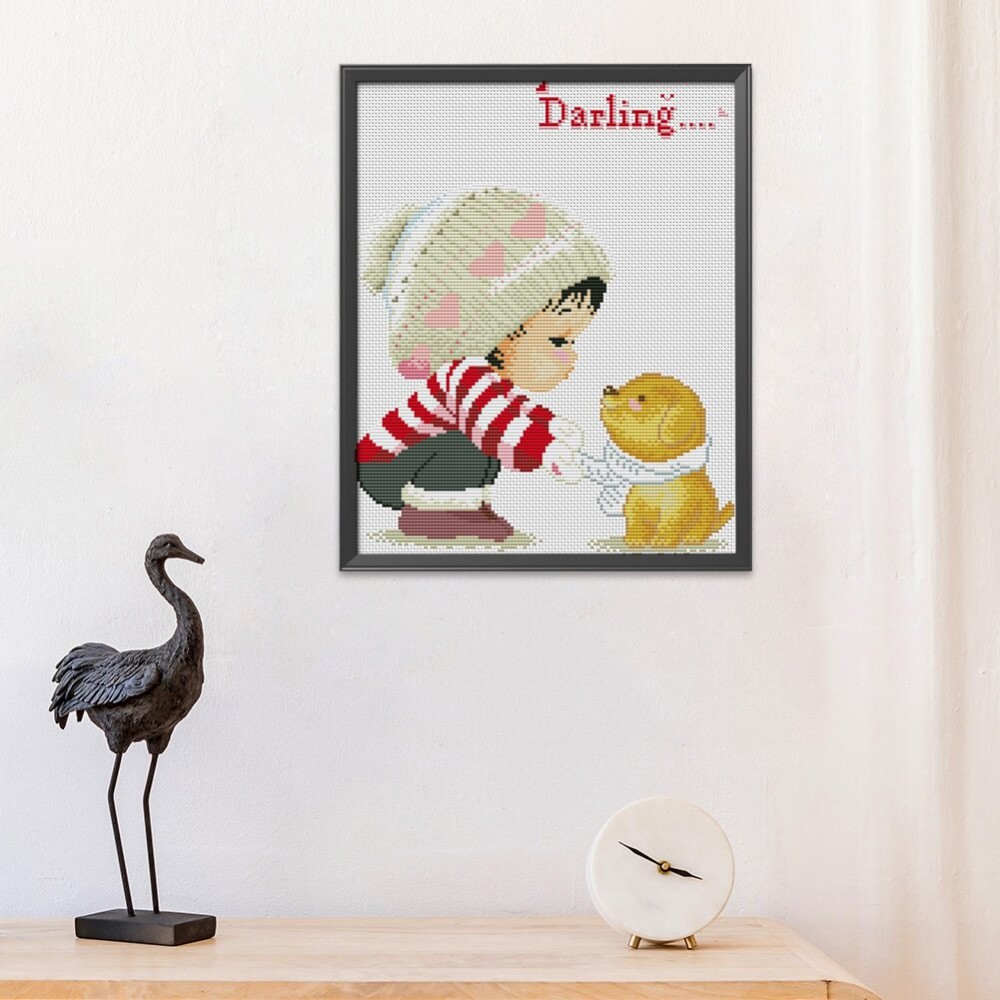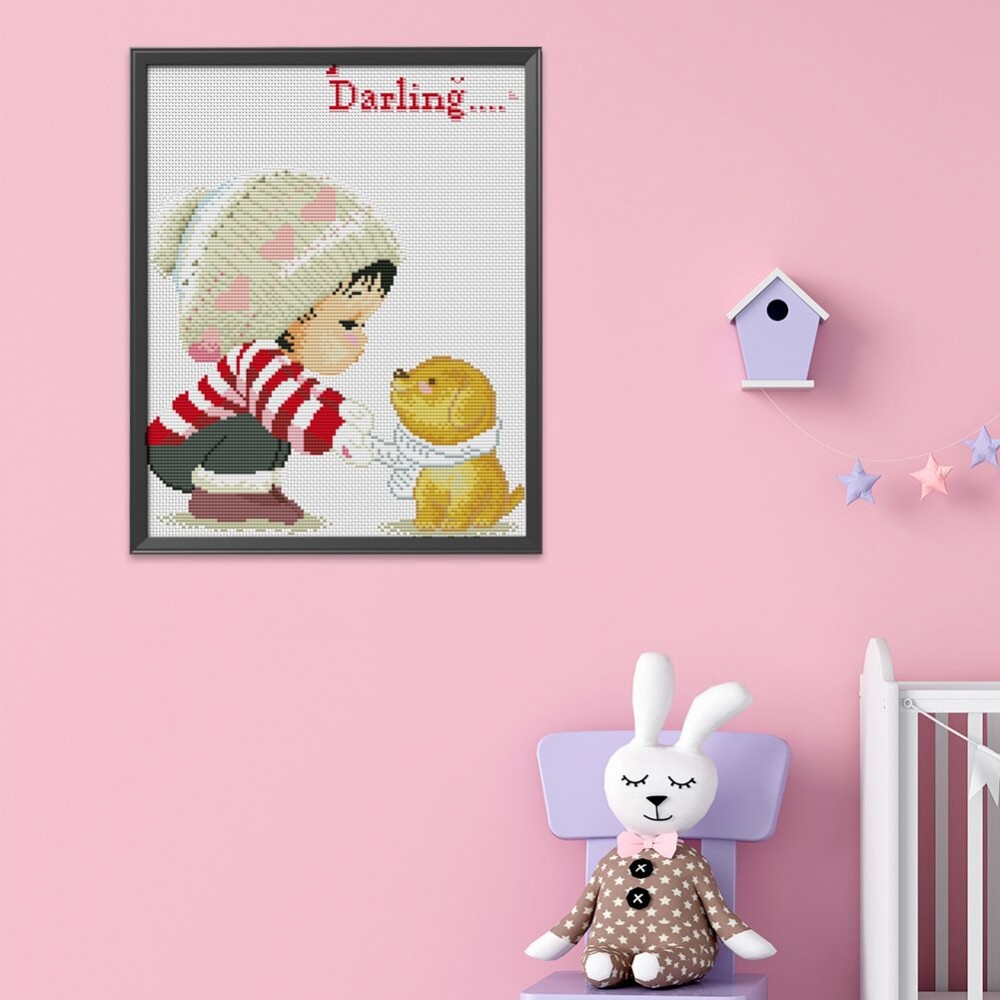 Cute Kids Stamped Cross Stitch Kits Embroidery Sets DIY 3-Strand Ecological Cotton Thread 11CT Pre Printed Fabric Needlework Crafts Home Decoration