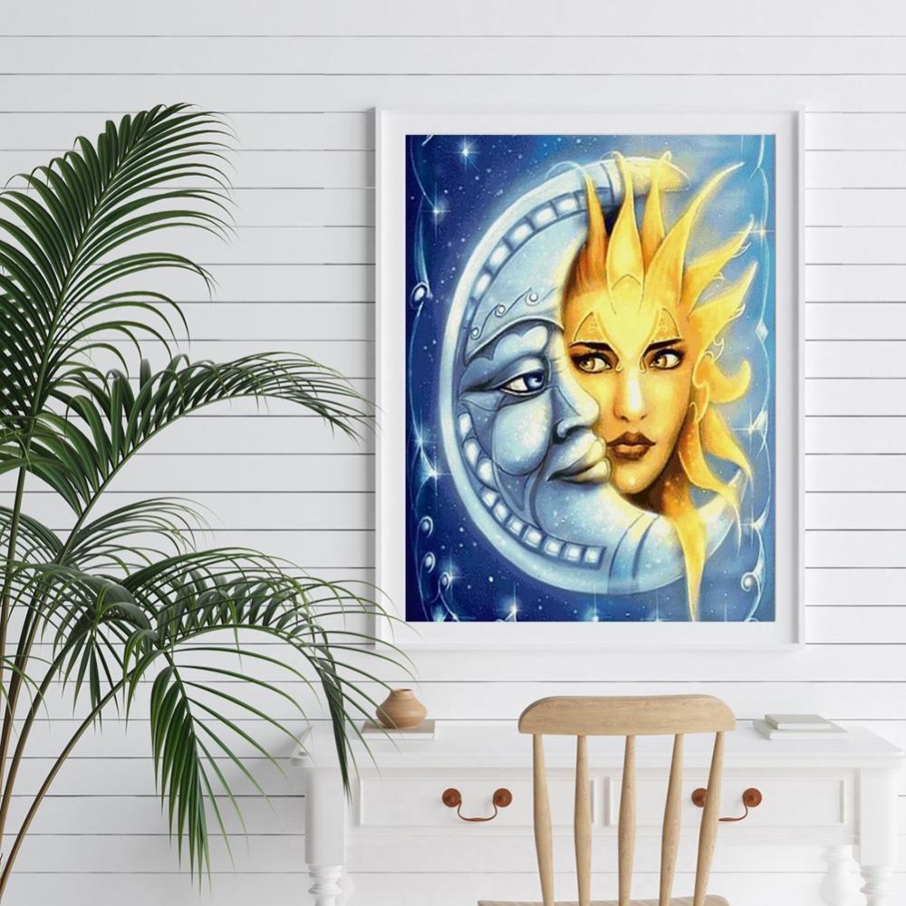 5D DIY Full Drill Diamond Painting Sun Moon Cross Stitch Embroidery Mosaic Kit Needlework Set Home Decoration