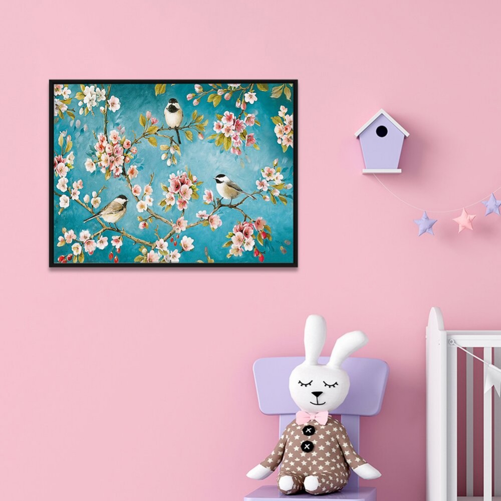 Pink Flower Bird - 11CT Stamped Cross Stitch - 48x68cm