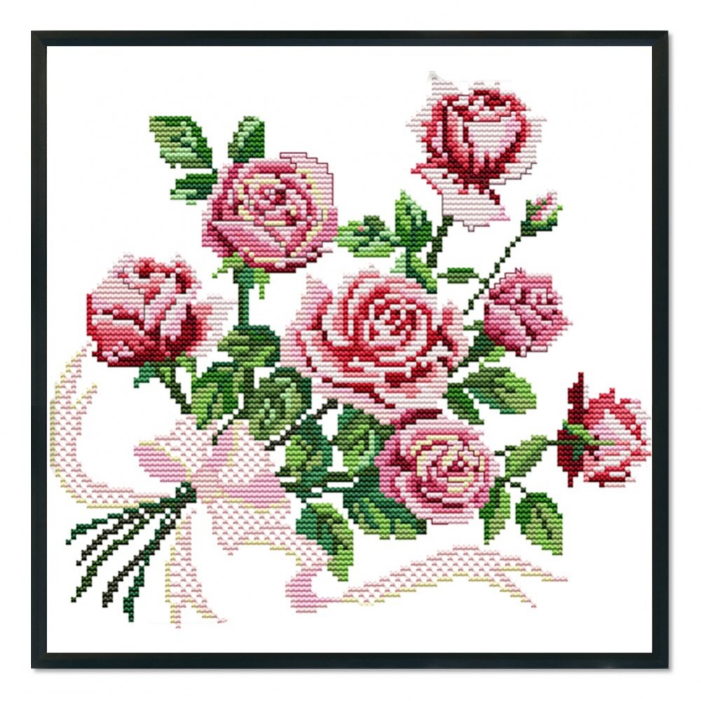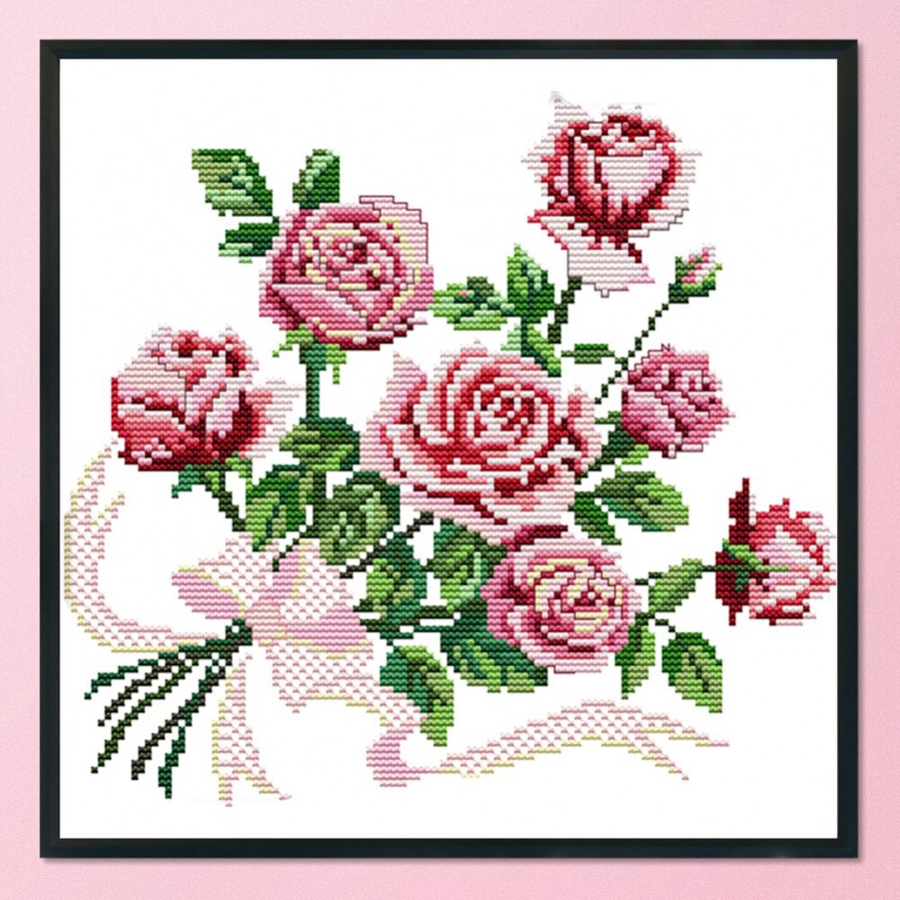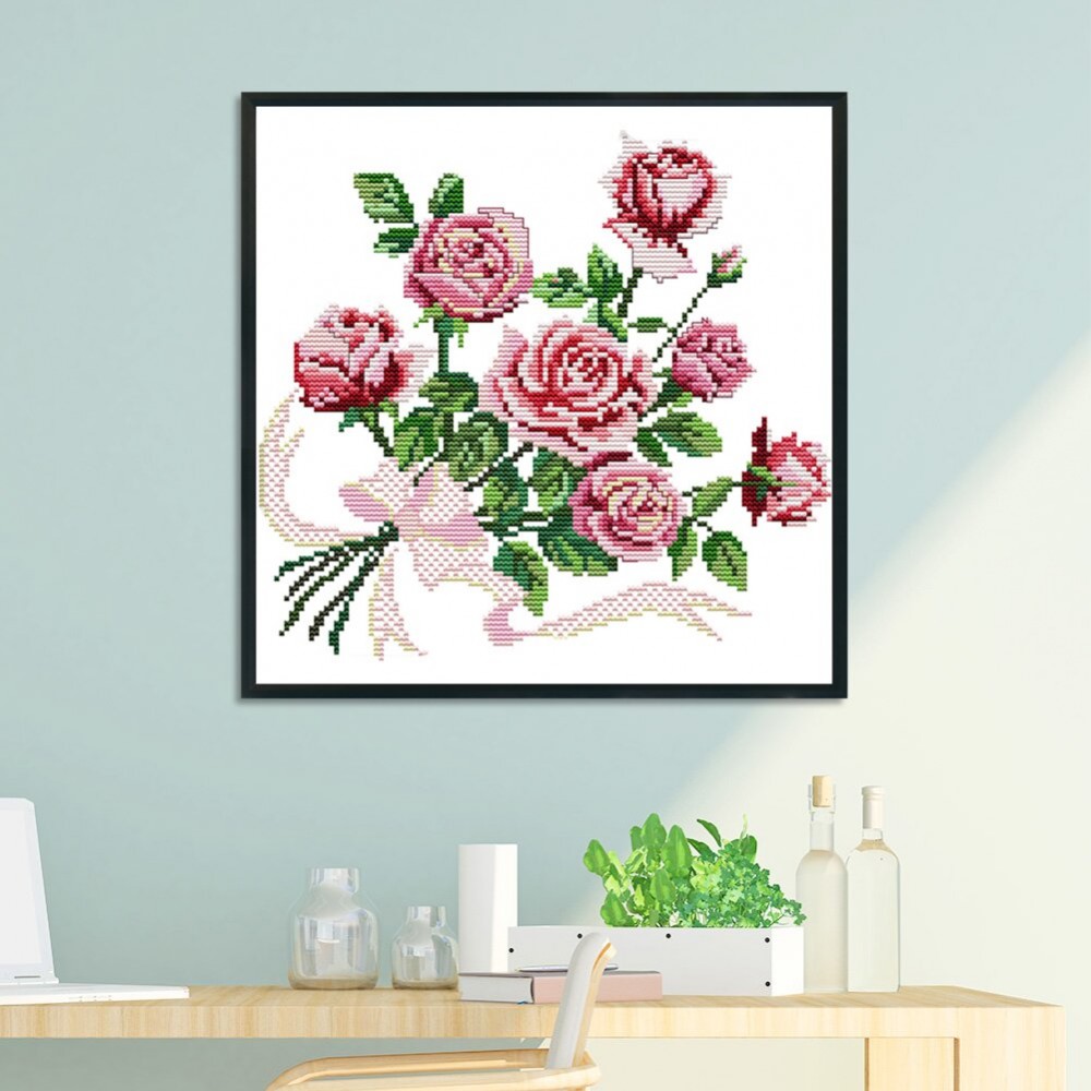 Rose DIY Stamped Cross Stitch Kits 14CT Printed Embroidery Set Art Crafts Handmade Needlework Home Decor