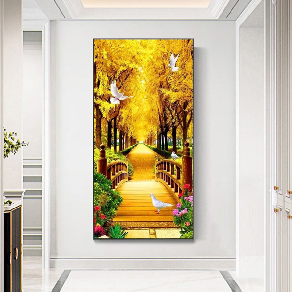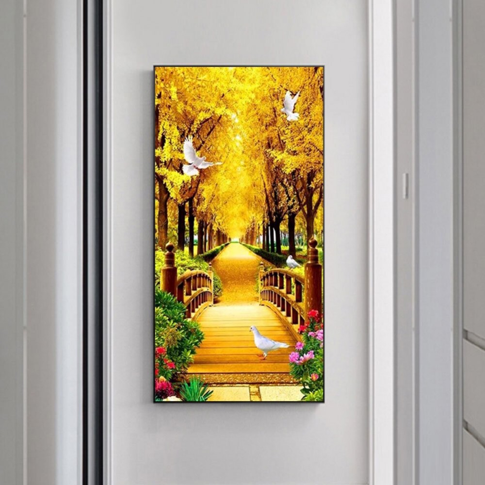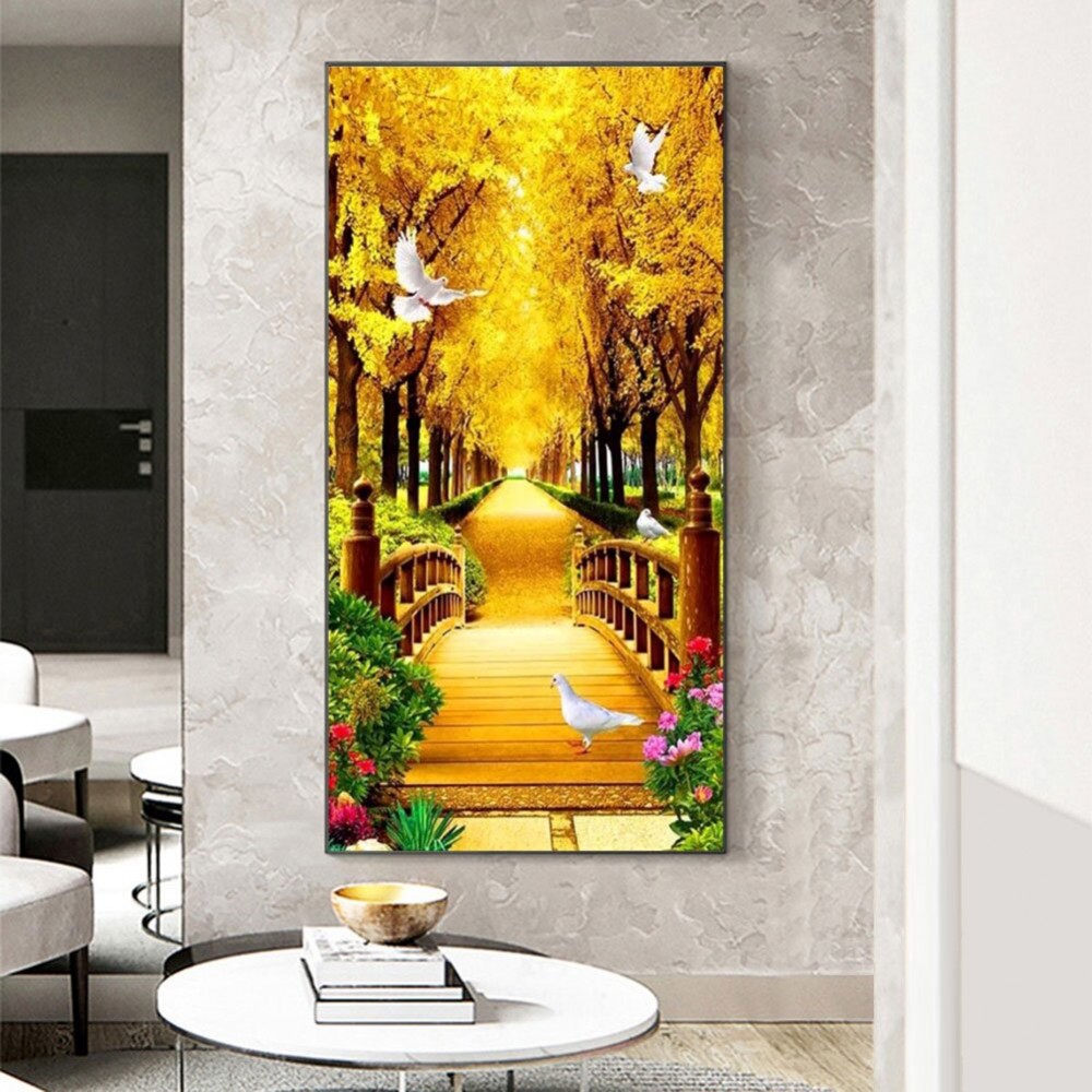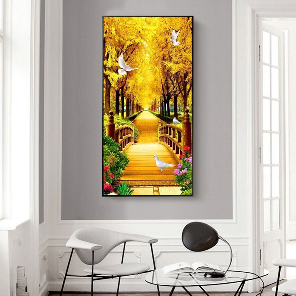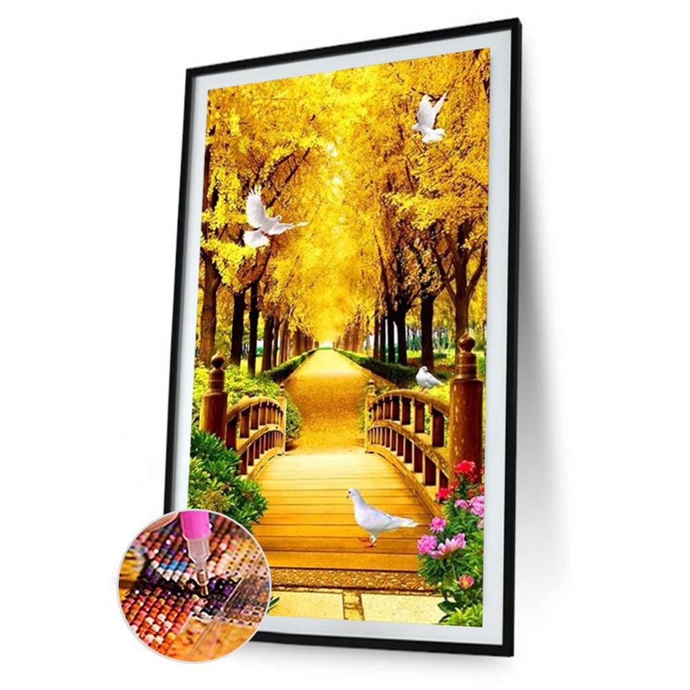 5D DIY Full Round Drill Diamond Painting Autumn Path Cross Stitch Embroidery Mosaic Craft Needlework Set Home Decoration
