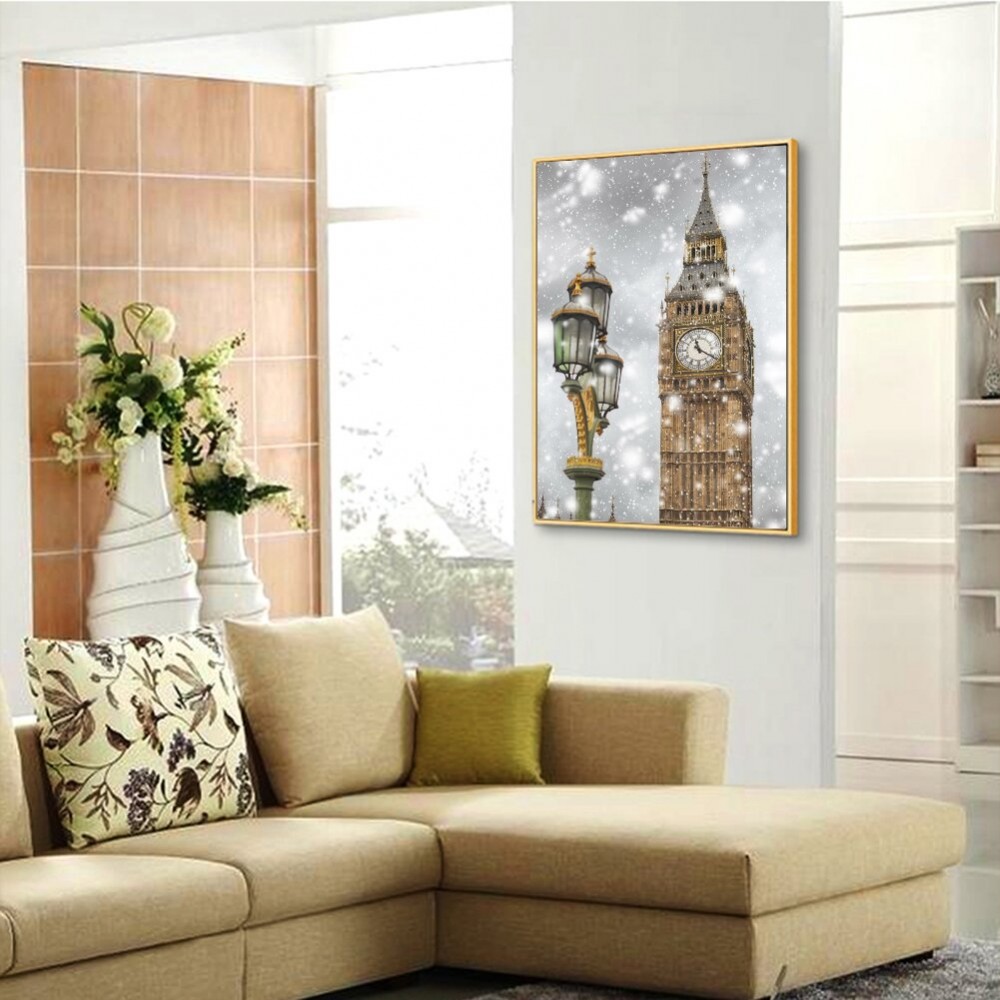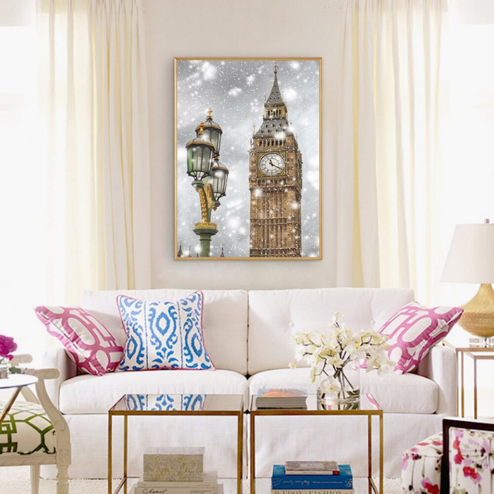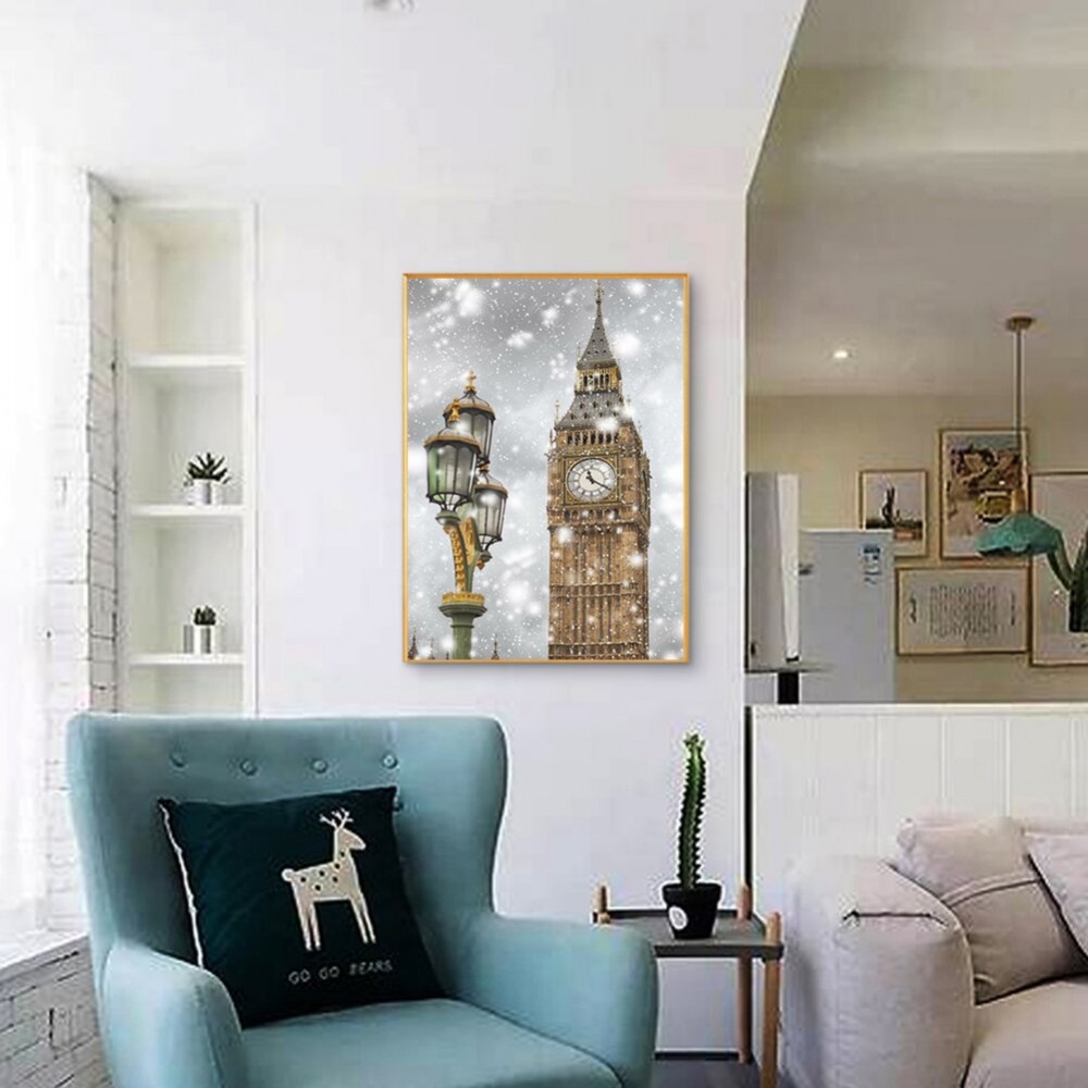 5D DIY Full Round Drill Diamond Painting Clock Tower Mosaic Kit Rhinestone Drawing Picture Home Decoration Art Craft