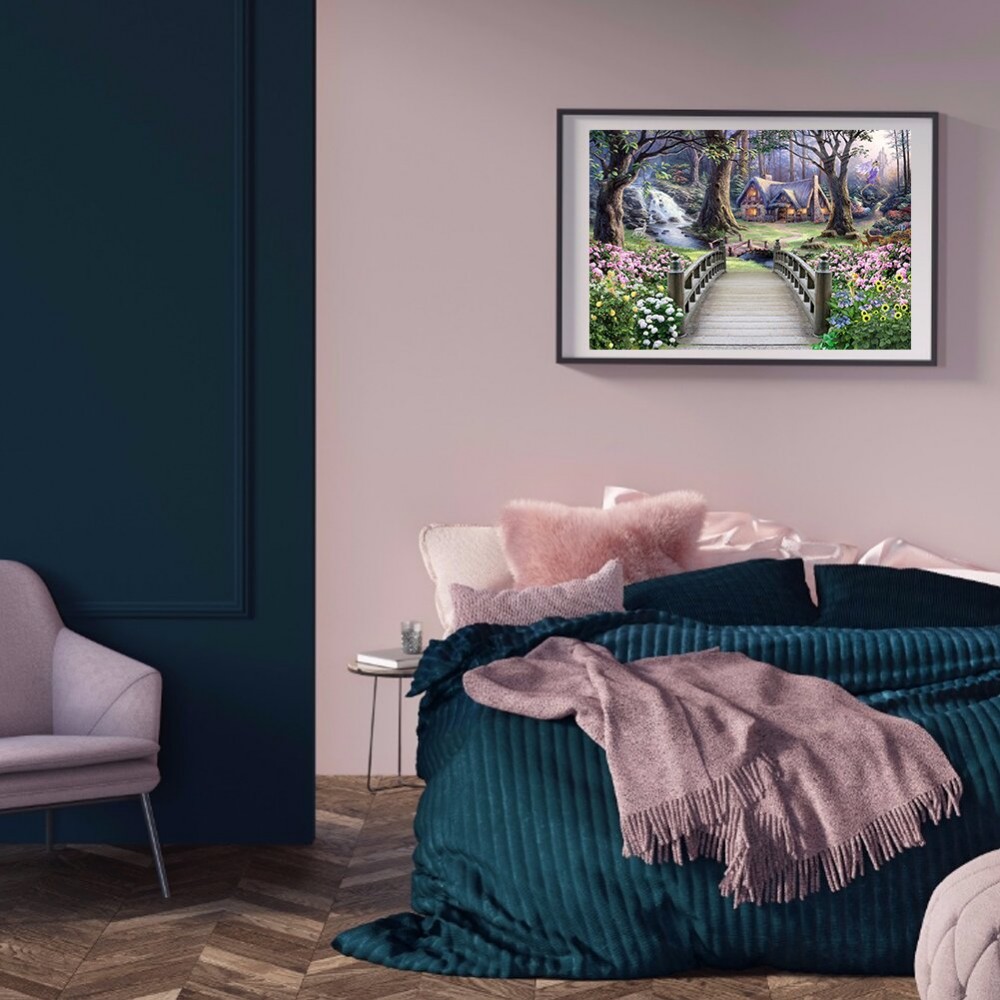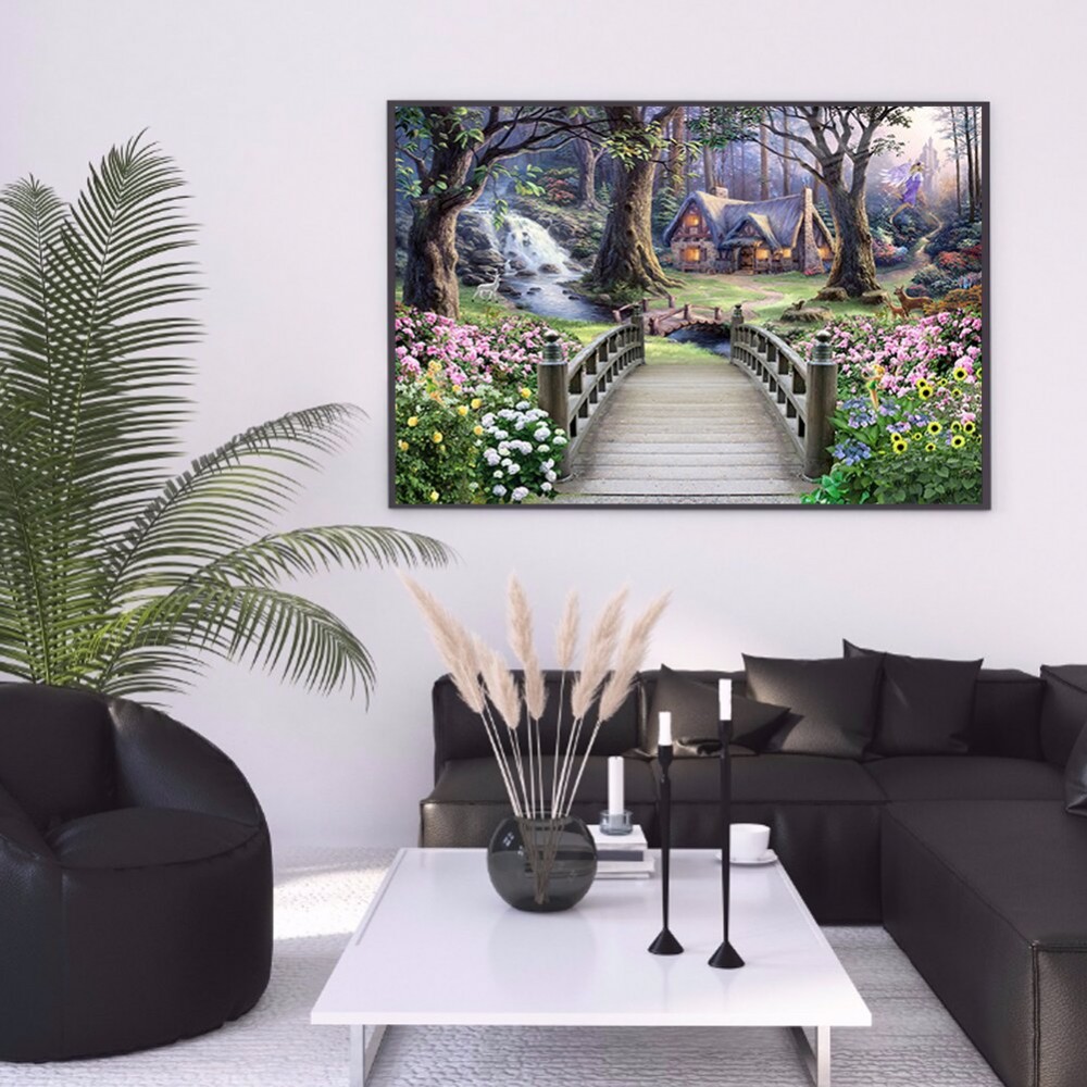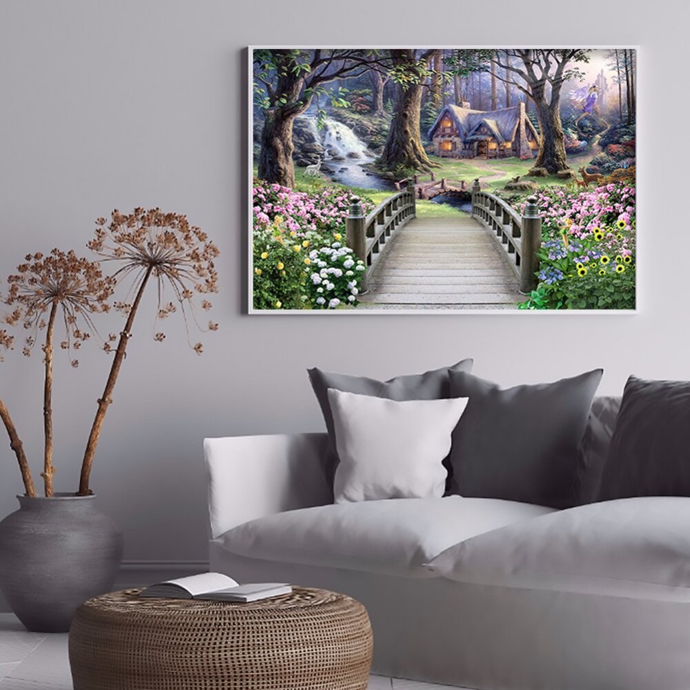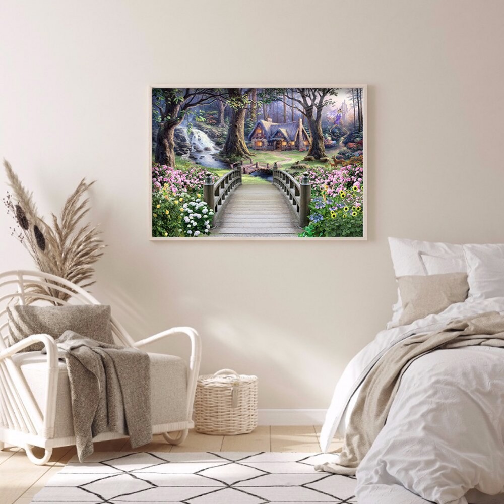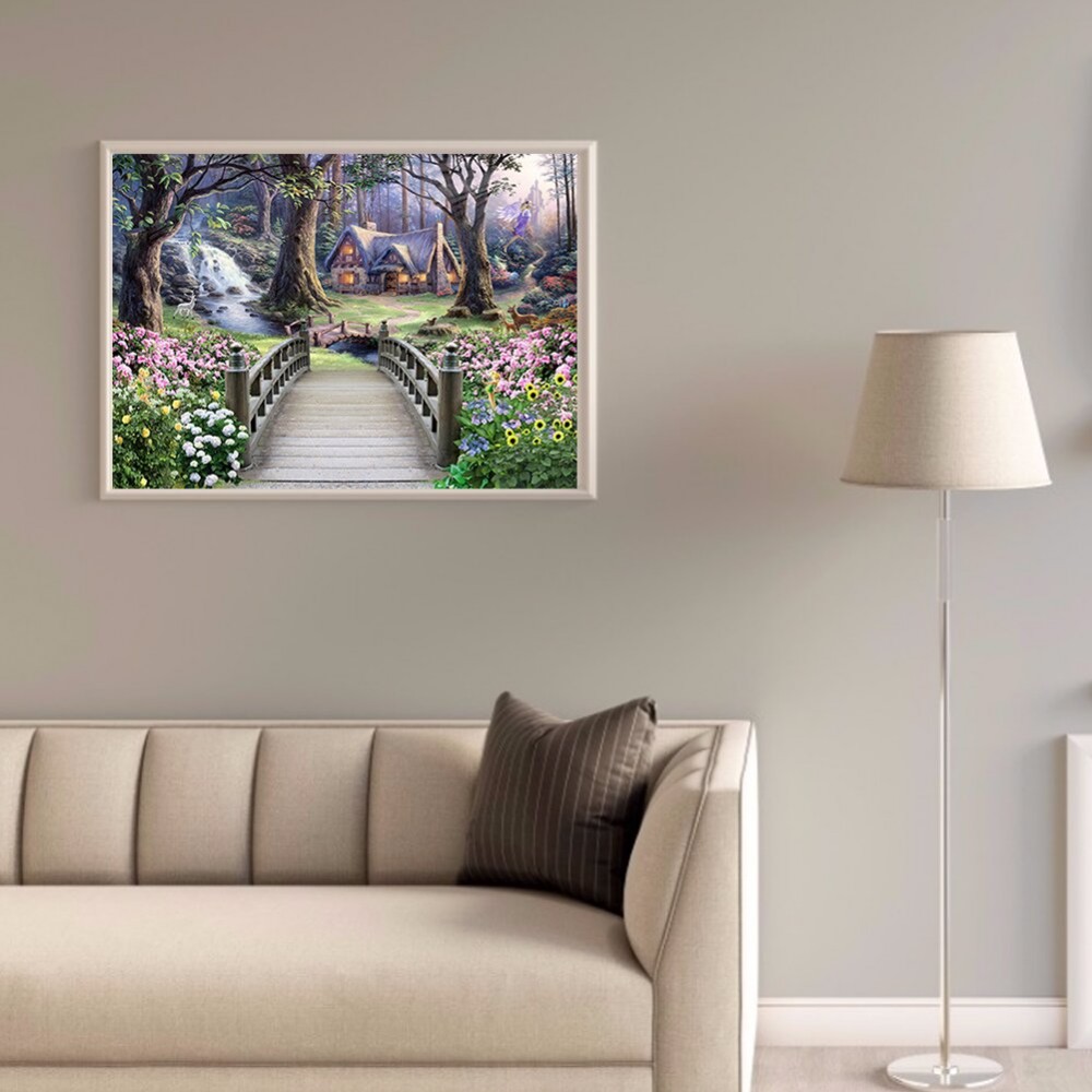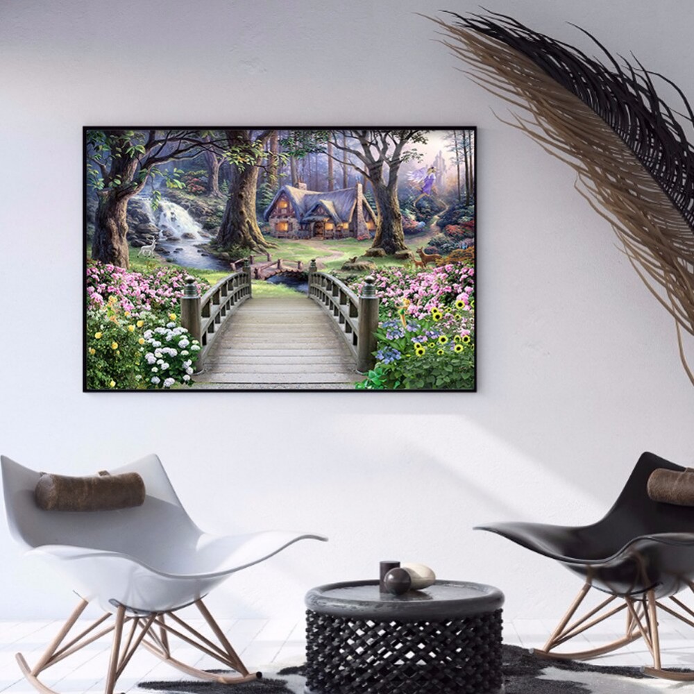 16x12 inch Diamond Painting Bridge Over River 5D Full Round Rhinestone Mosaic Wall Art Picture DIY Kit Home Decoration