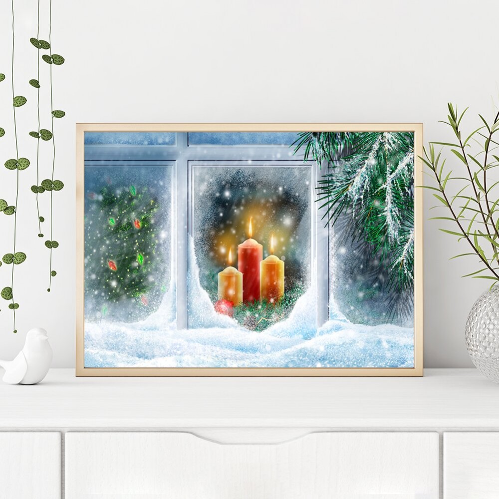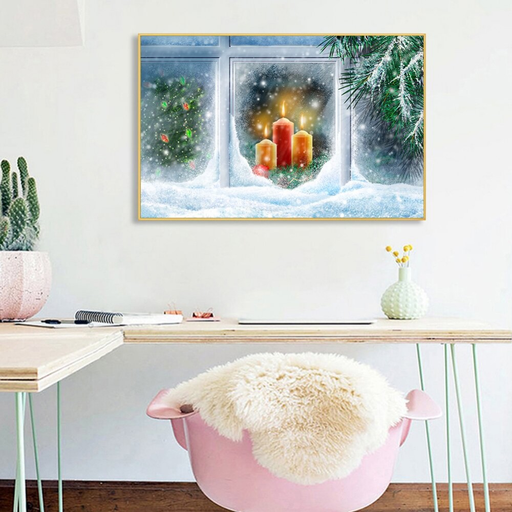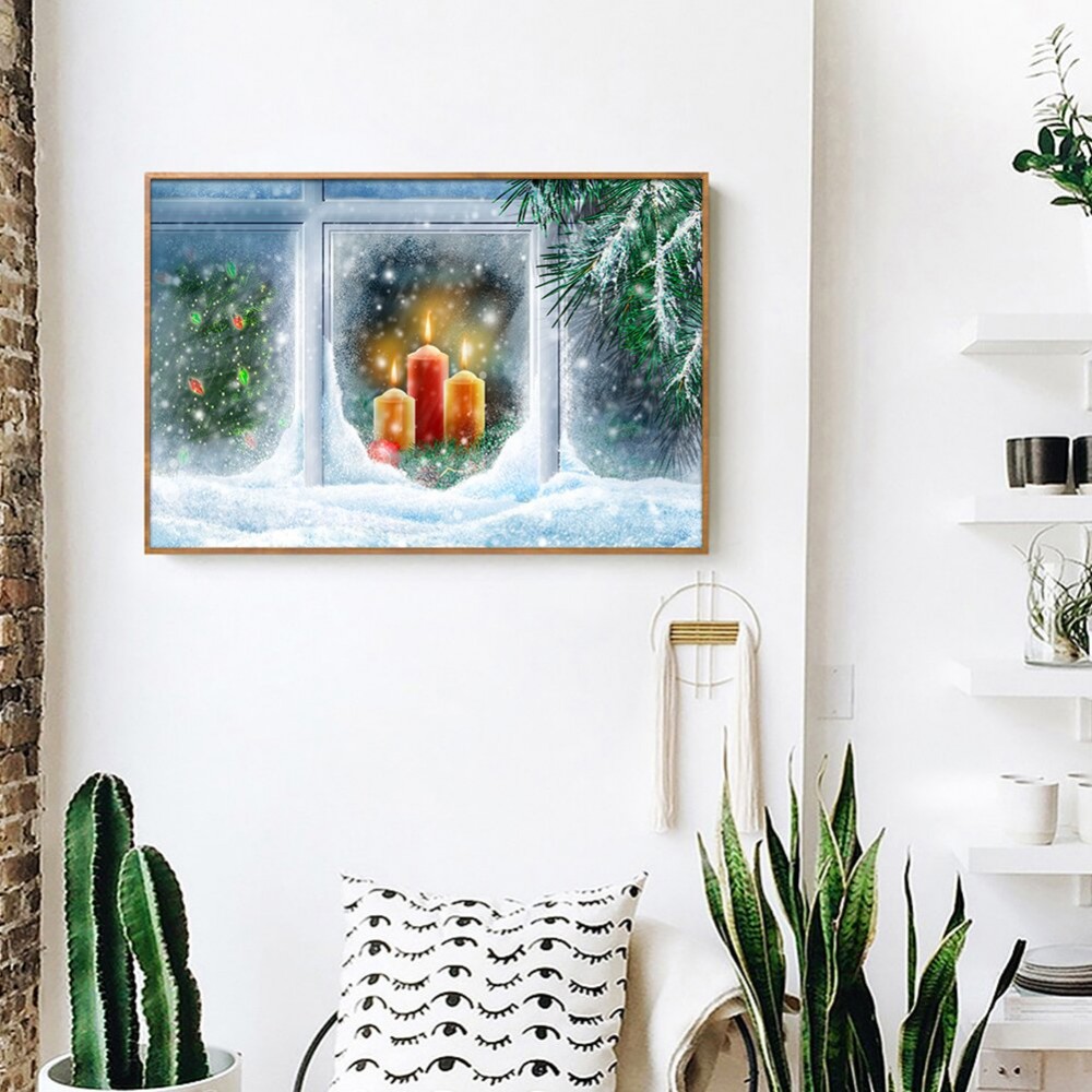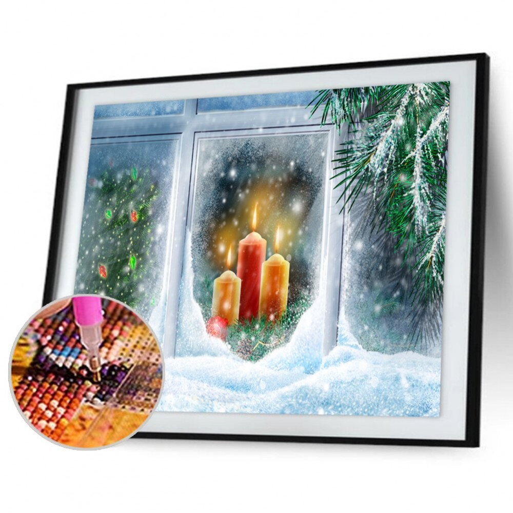 Candle in the Window 5D DIY Full Round Drill Rhinestones Diamond Painting Mosaic Kits Art Craft Home Decor Gifts