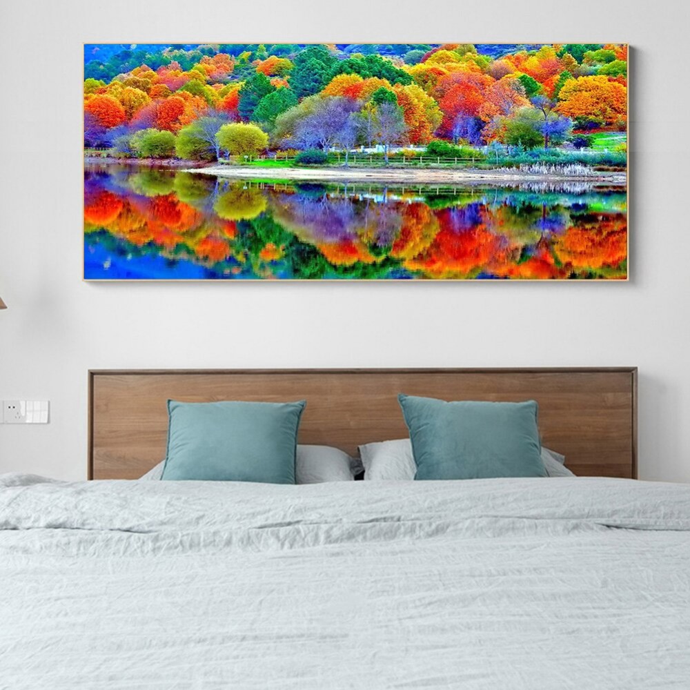 Colorful Forest DIY 5D Mosaic Full Drill Round Diamond Resin Painting Drill Kit Picture of Room Decoration Wedding Gifts